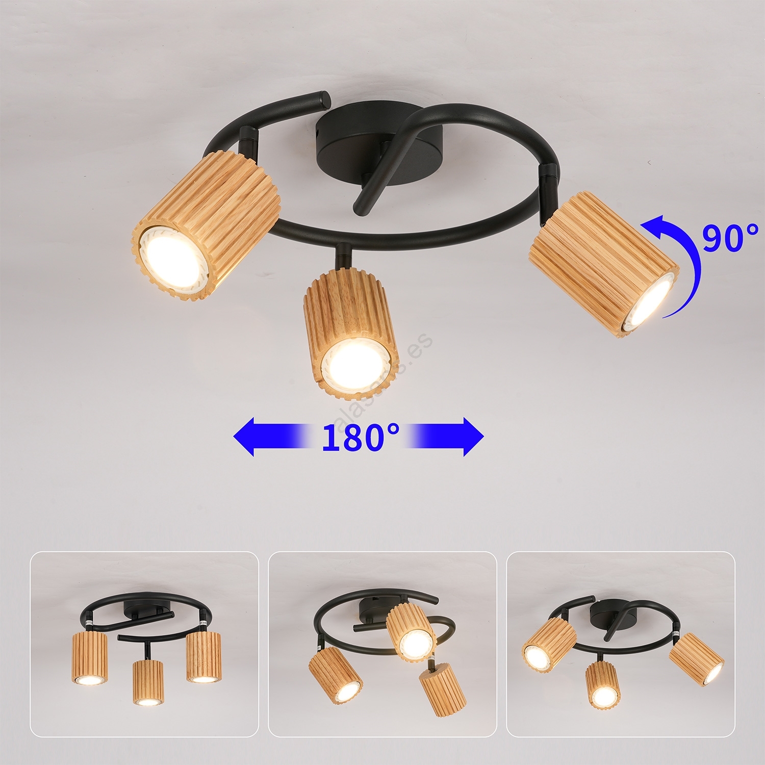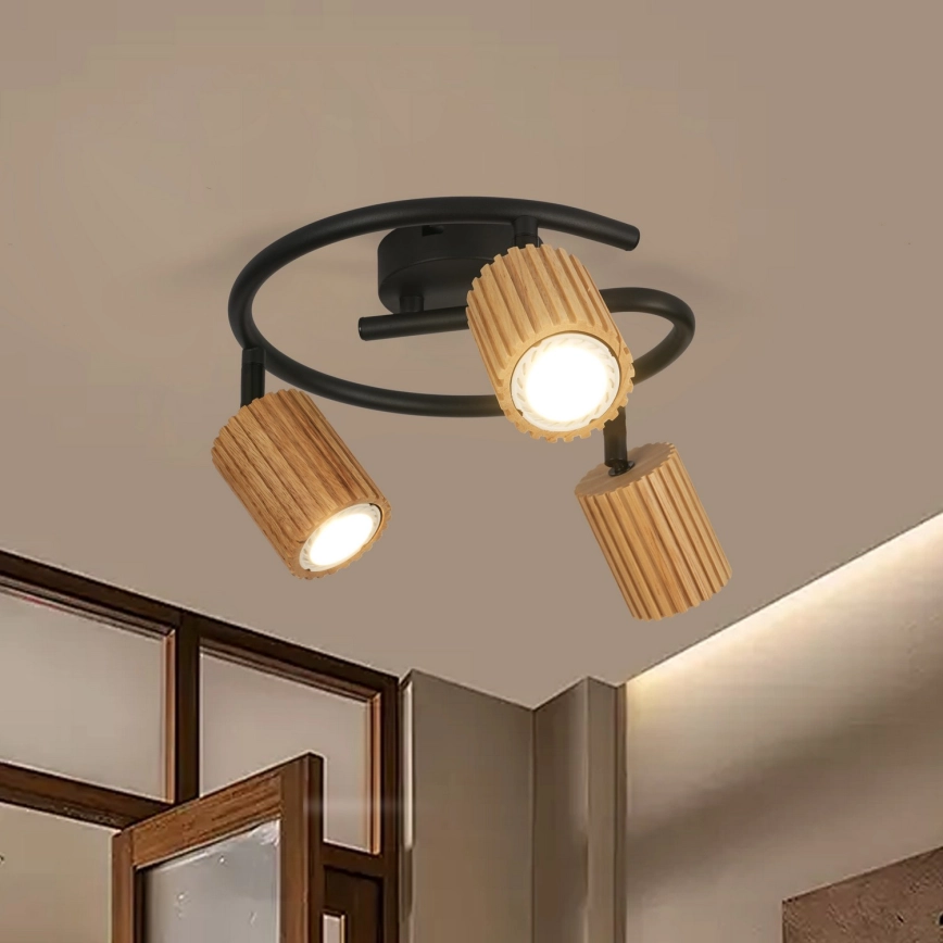 El diseño bonito y funcional caracteriza a Brilagi - Lámpara de focos MODERN WOOD 3xGU10/8W/230V madera/negro.  Una bombilla con casquillo GU10 es adecuada para la lámpara. Aquí, puedes comprar otras bombillas a precios ventajosos. Será una adición interesante para tu hogar.