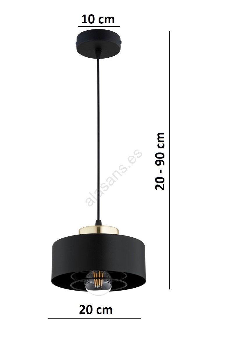 Brilagi - Lámpara colgante con cable 1xE27/60W/230V Ø 20 cm negro/dorado