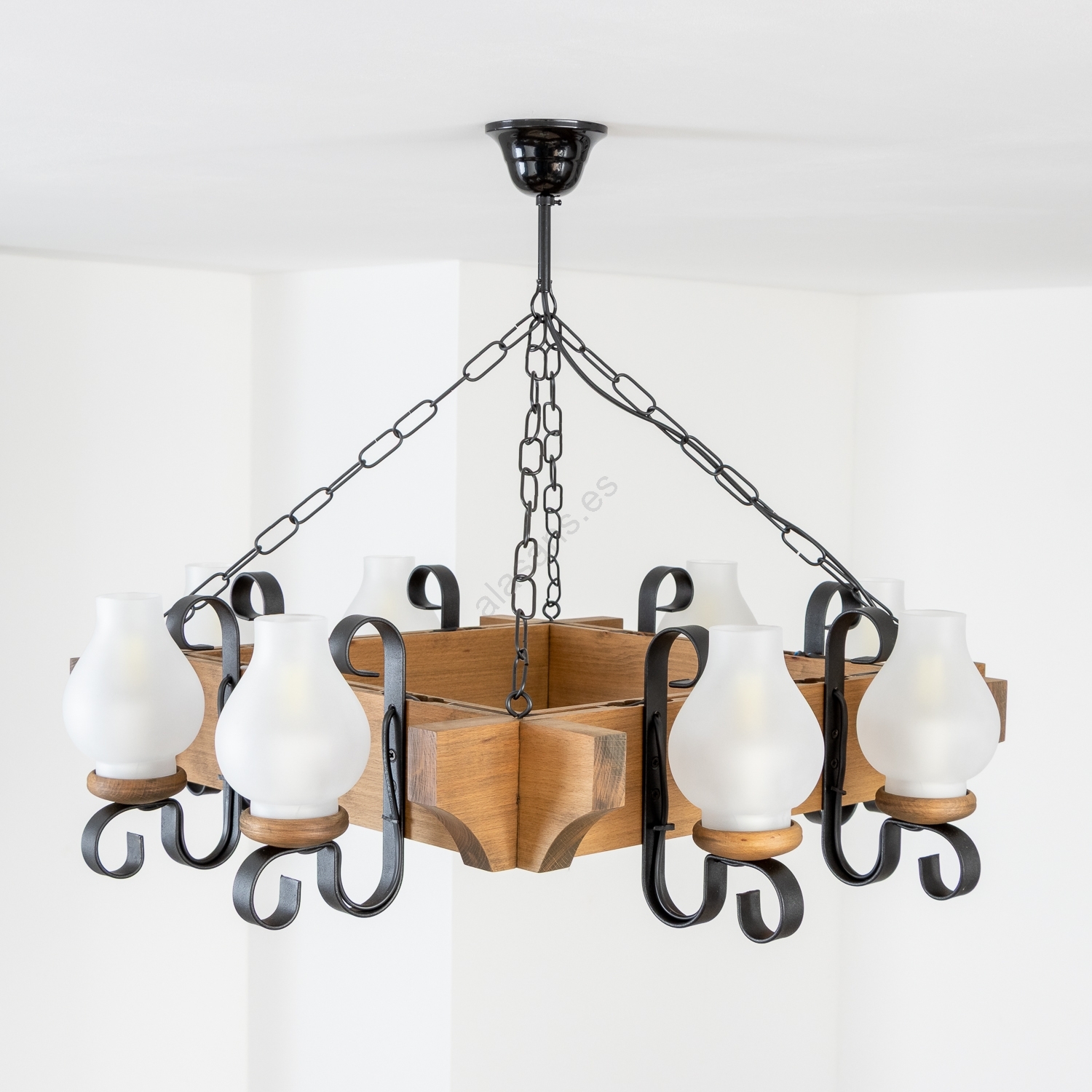 • Brilagi - Lámpara colgante con cadena QUEEN 8xE14/40W/230V haya/nogal