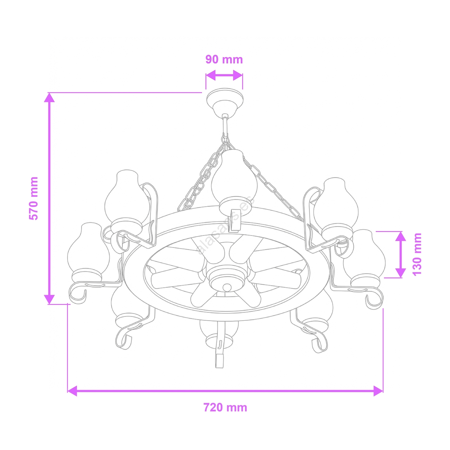 Brilagi - Lámpara colgante con cadena ROATA de 8xE14/40W/230V, Ø 70 cm, haya/nogal