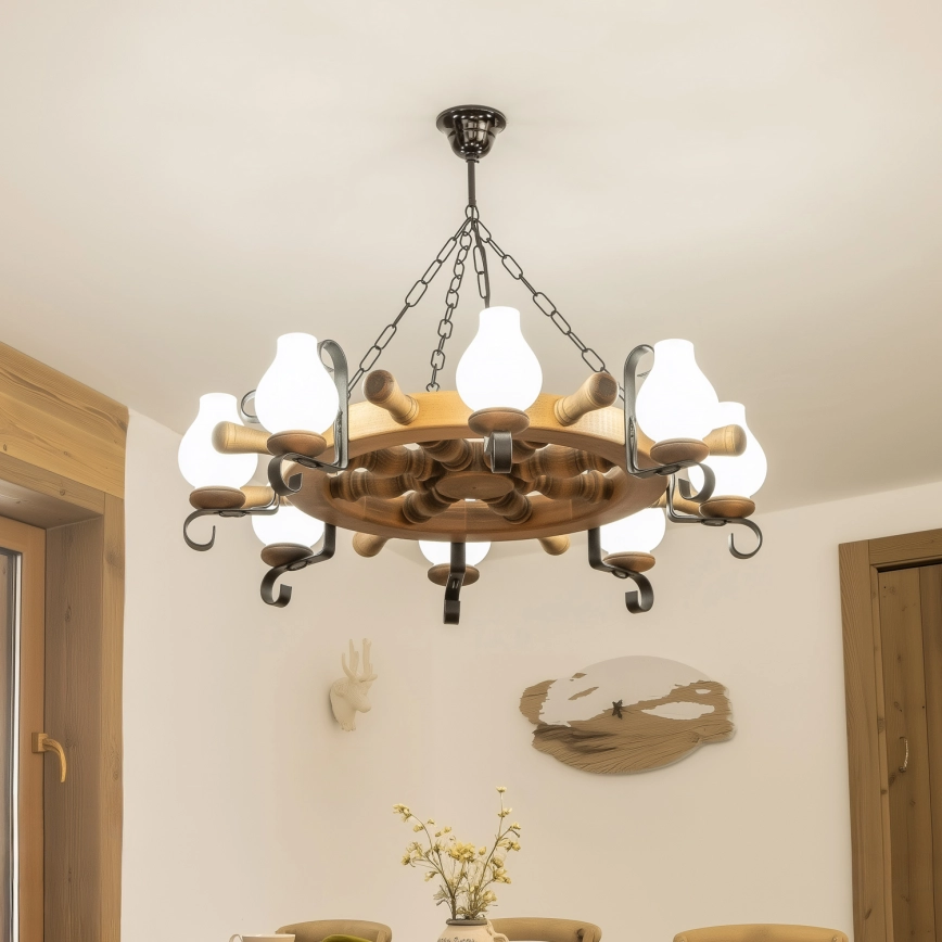 • Brilagi - Lámpara colgante con cadena TIMONA 8xE14/40W/230V Ø 70 cm haya
