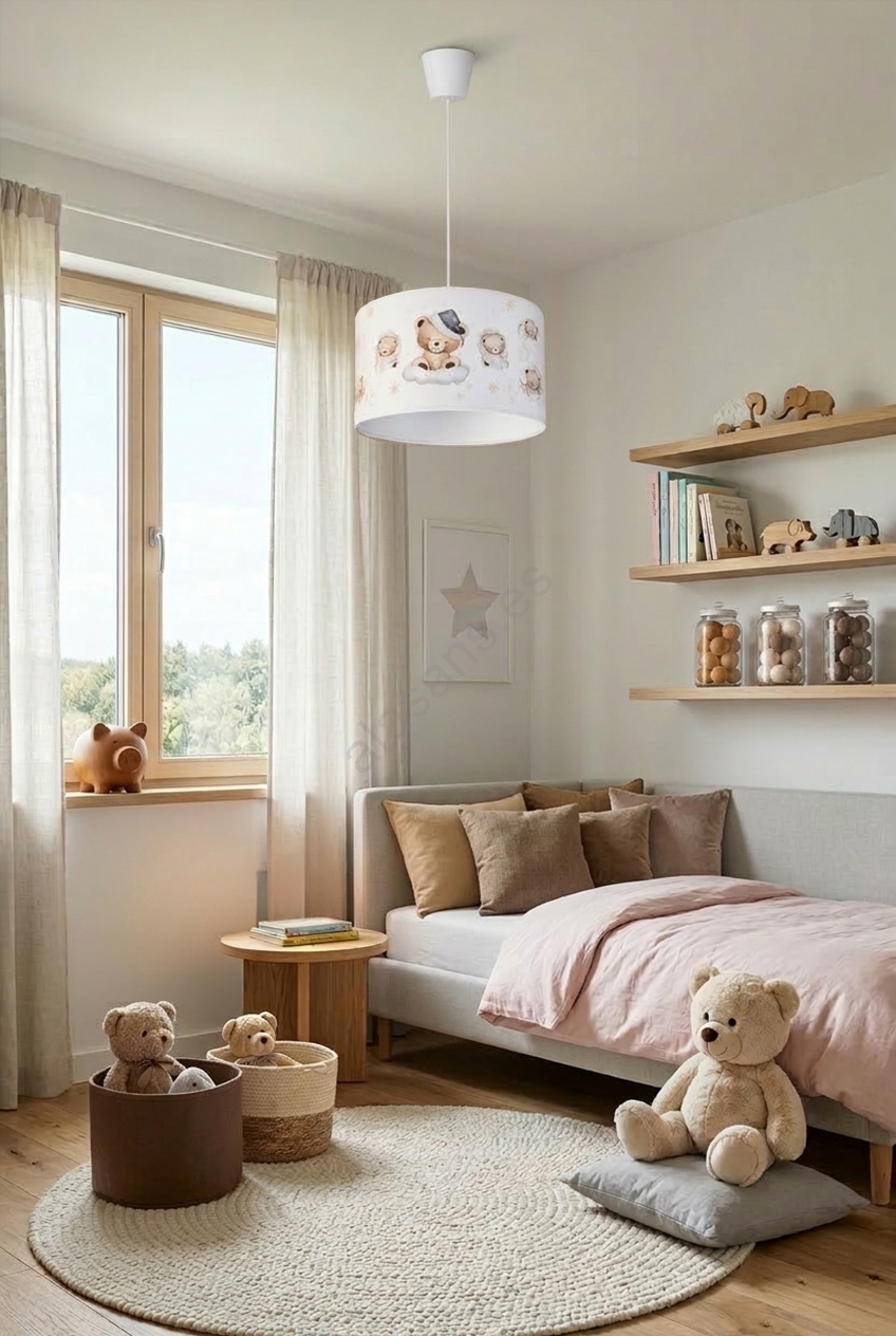 • Brilagi - Lámpara colgante infantil LED con cable BOBO 1xE27/10W/230V, Ø 35 cm, blanco/ositos