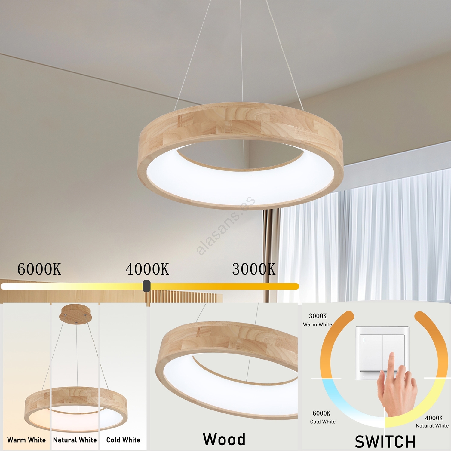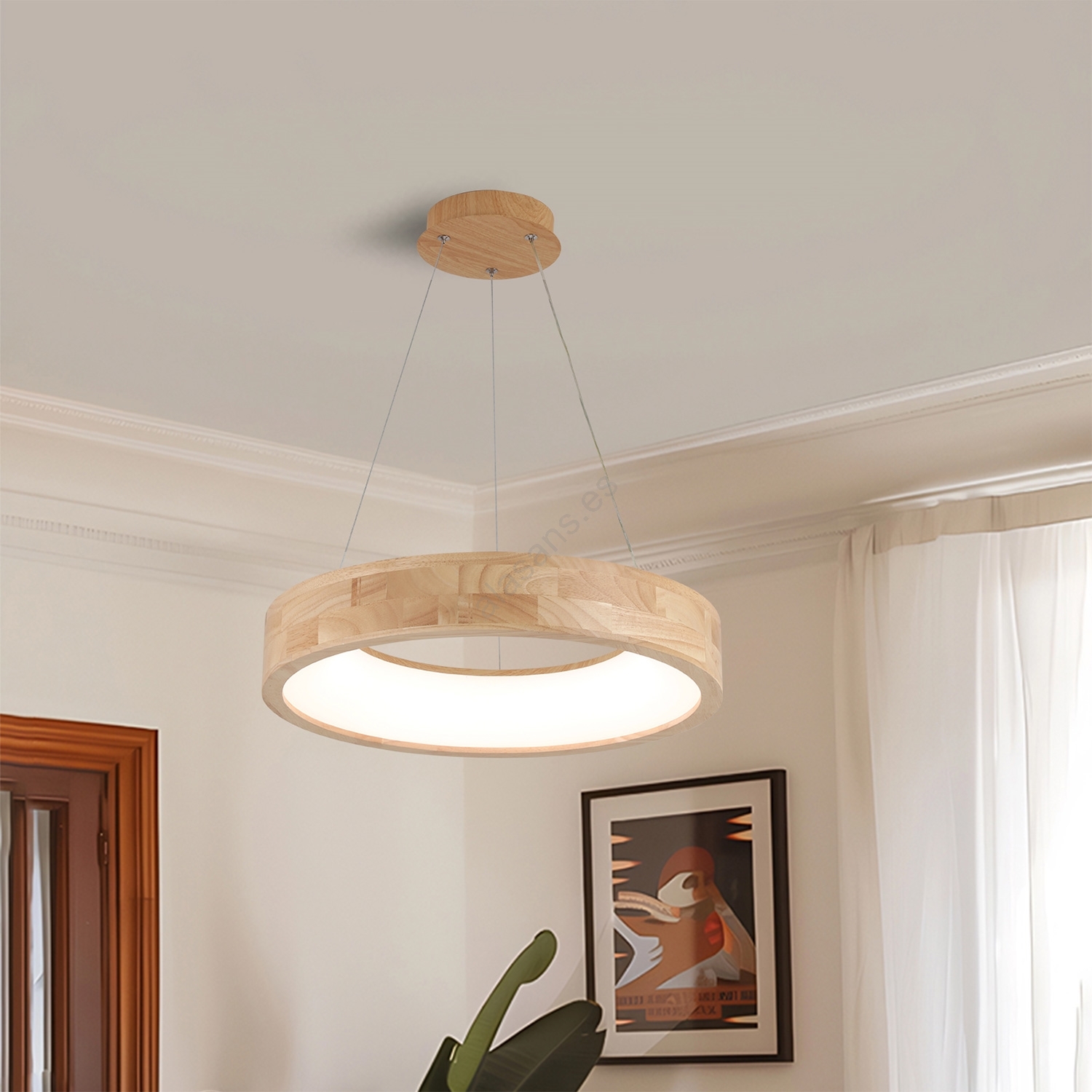 Brilagi - Lámpara colgante LED suspendida por cable FALCON WOOD LED/30W/230V 3000/4000/6000K, Ø 45 cm, madera