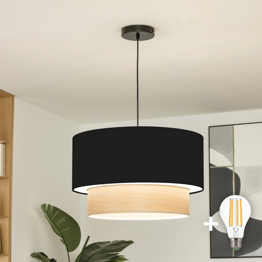 Brilagi - Lámpara colgante LED sobre cable CERIA 1xE27/40W/230V Ø 50 cm negro/beige