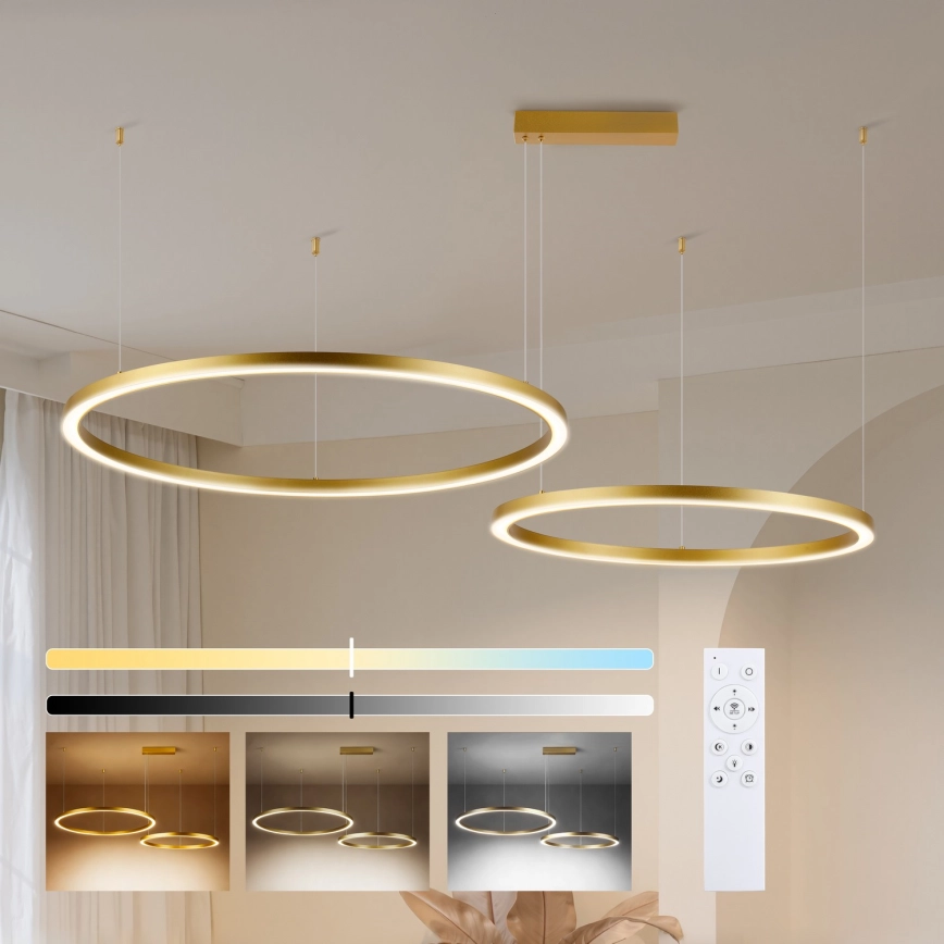 Brilagi - Lámpara colgante LED regulable en cable PORTOFINO LED/98W/230V 3000-6000K acabado dorado + mando a distancia