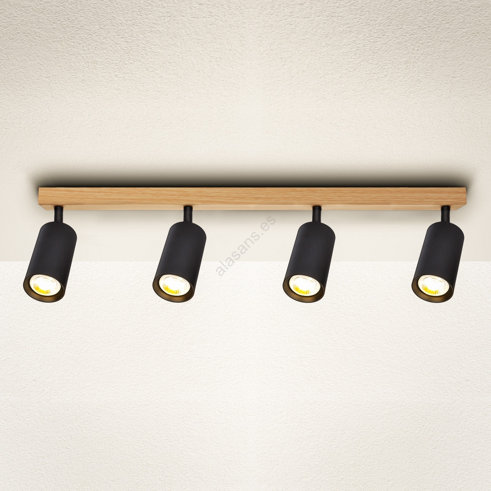 • Brilagi - Lámpara de focos SELE 4xGU10/30W/230V negra/acabado roble