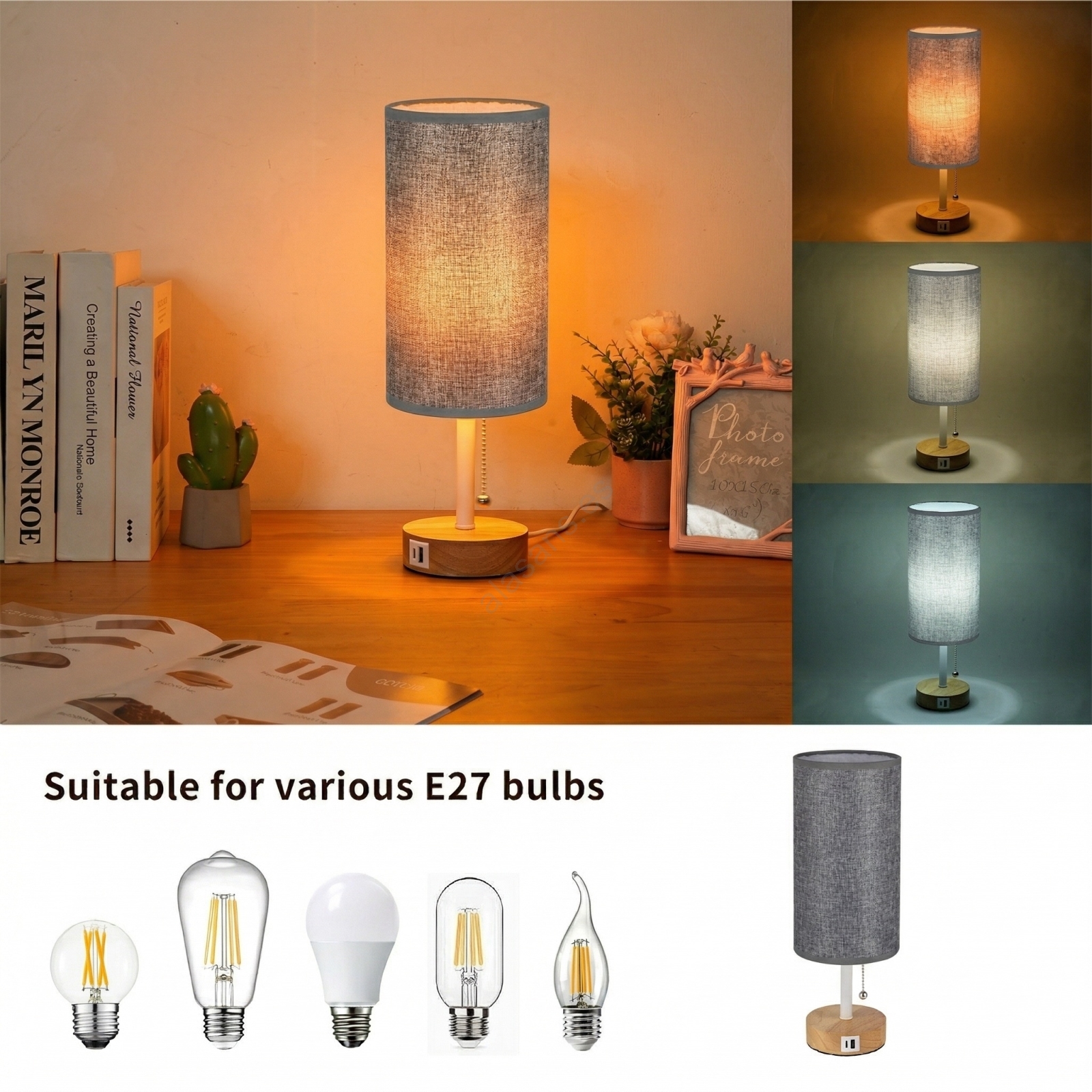 El diseño bonito y funcional caracteriza a Brilagi - Lámpara de mesa con puerto USB TABLON 1xE27/25W/230V roble/blanco/gris.  Una bombilla con casquillo E27 es adecuada para la lámpara. Aquí, puedes comprar otras bombillas a precios ventajosos. Será una adición interesante para tu hogar.