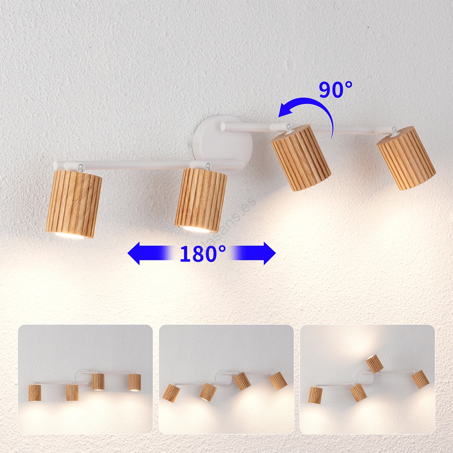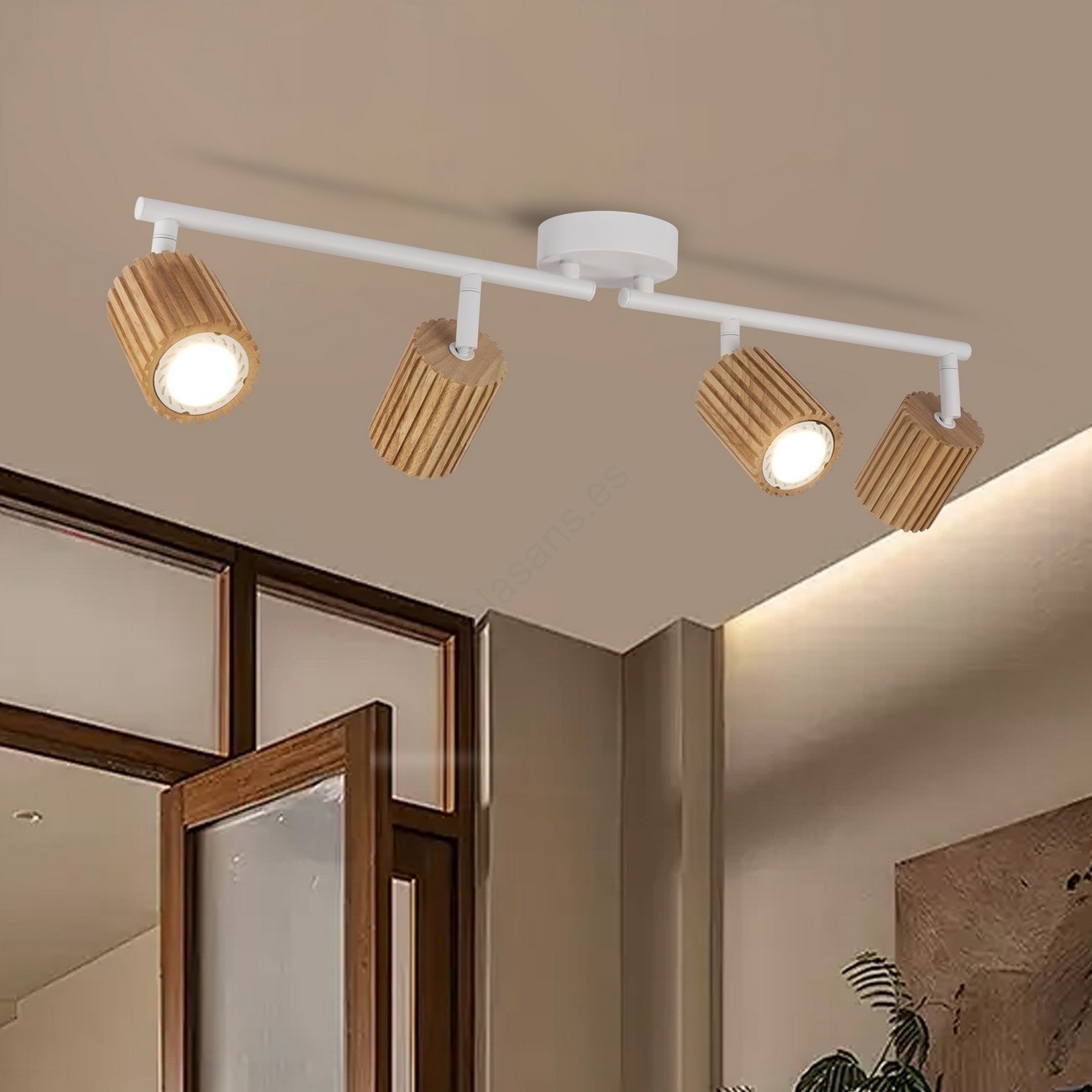 El diseño bonito y funcional caracteriza a Brilagi - Lámpara de focos MODERN WOOD 4xGU10/8W/230V madera/blanco.  Una bombilla con casquillo GU10 es adecuada para la lámpara. Aquí, puedes comprar otras bombillas a precios ventajosos. Será una adición interesante para tu hogar.