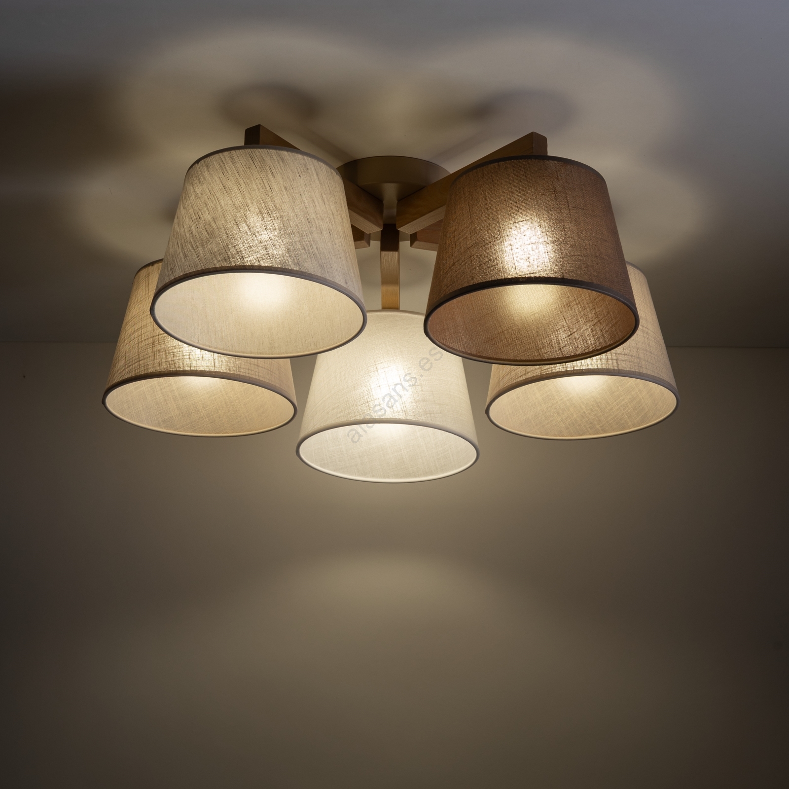 El diseño bonito y funcional caracteriza a Brilagi - Lámpara de techo montada en superficie LATTE SABIA 5xE27/15W/230V pino/mix.  Una bombilla con casquillo E27 es adecuada para la lámpara. Aquí, puedes comprar otras bombillas a precios ventajosos. Será una adición interesante para tu hogar.