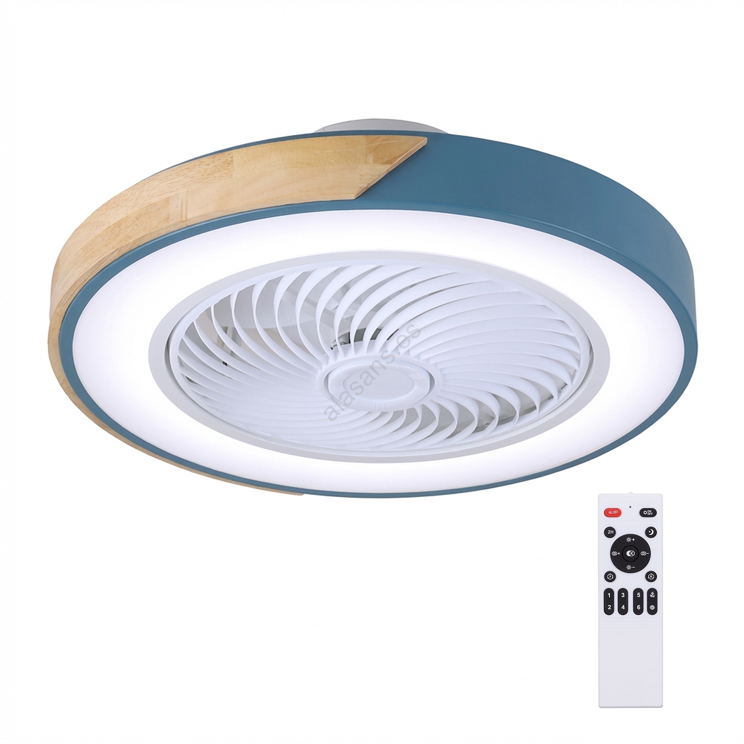 Brilagi - Lámpara de techo LED regulable con ventilador LED/38W/230V 3000-6500K Ø 50 cm azul/roble + mando a distancia