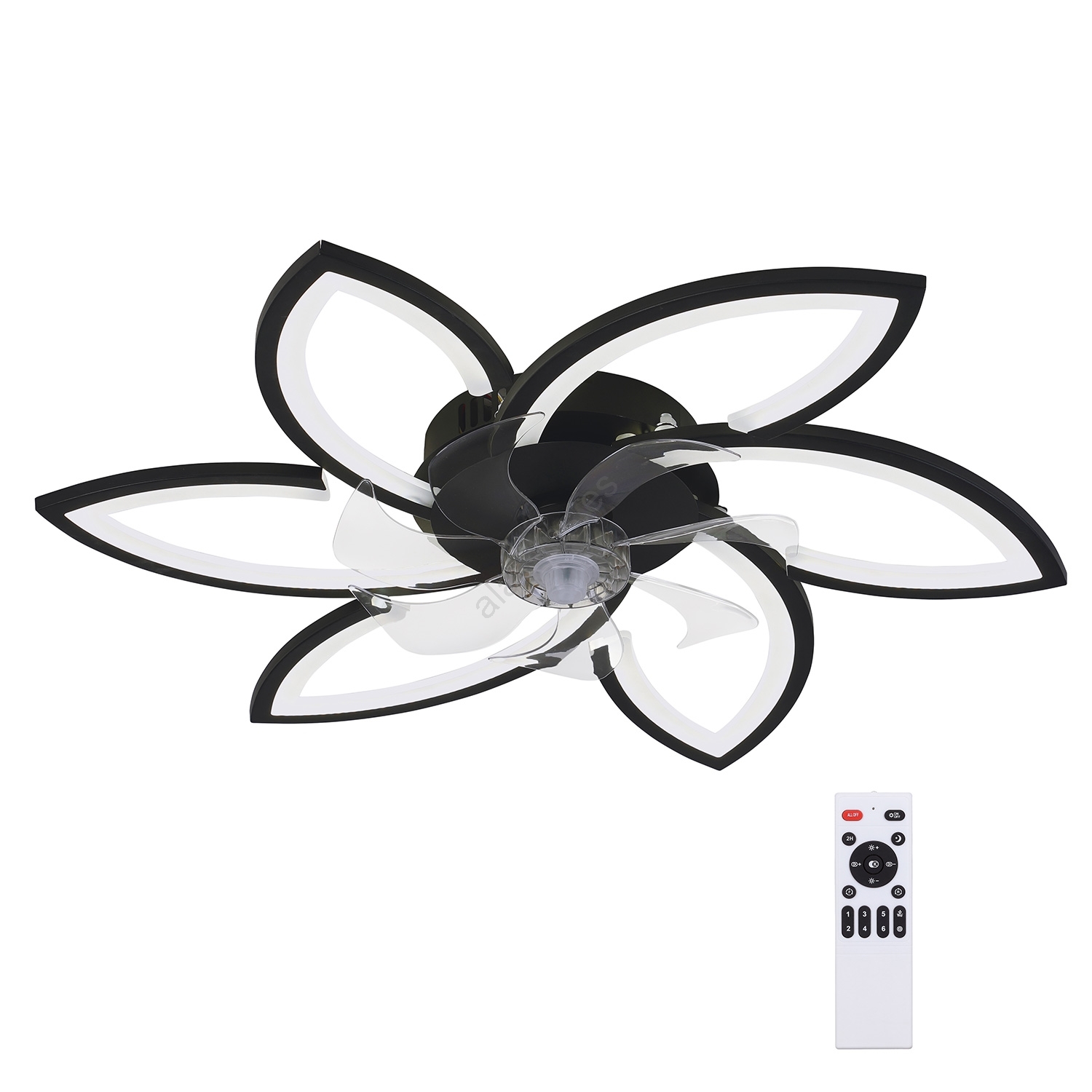 • Lámpara regulable con ventilador y control remoto.