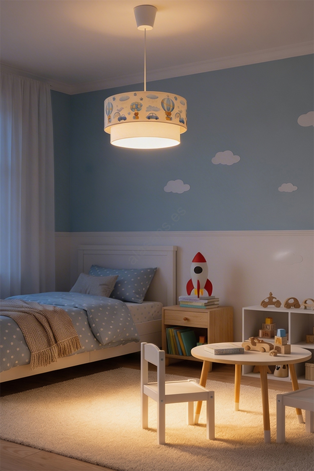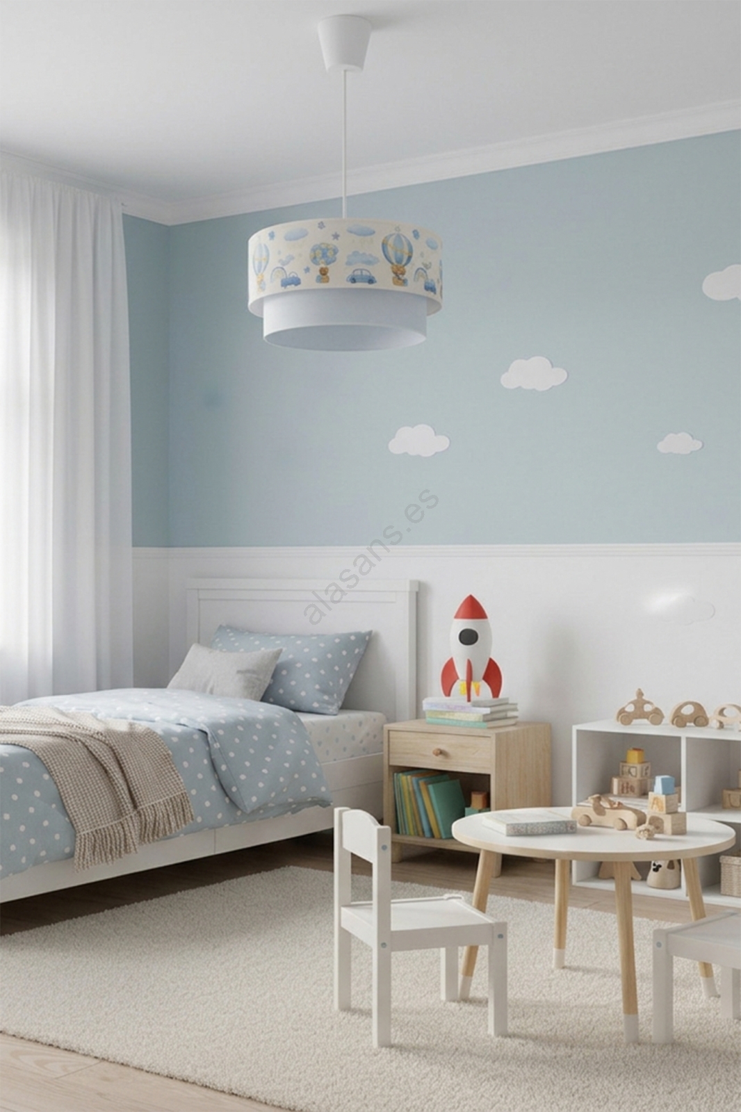 Brilagi - Lámpara colgante LED infantil BOBO en cable 1xE27/10W/230V Ø 40 cm crema/azul/ositos