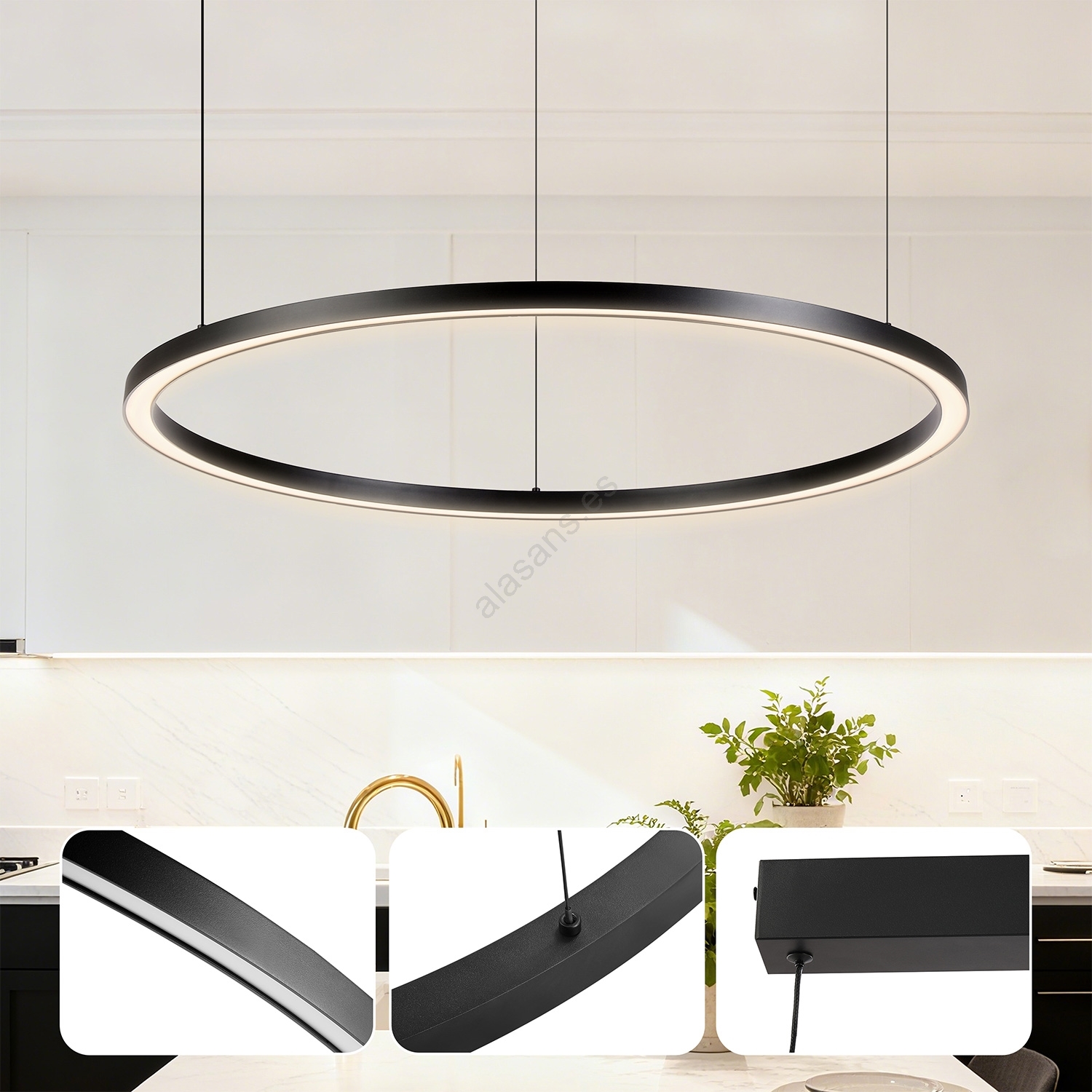 • Brilagi - Lámpara colgante LED regulable PORTOFINO con cable, 60 W, 230 V, 3000–6000 K, diámetro 80 cm, negra + control remoto