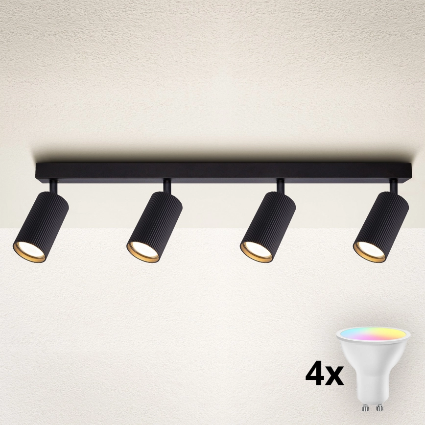 Brilagi - Foco LED RGBW regulable SELE MODERN 4xGU10/4,8W/230V 3000K negro + control remoto
