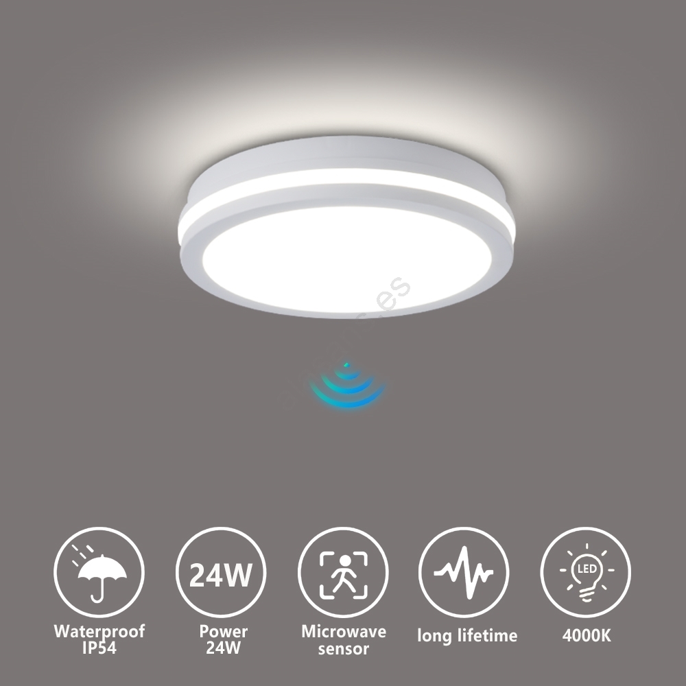 • Brilagi - Plafón LED de techo para exterior con sensor BENE LED/24W/230V Ø 26 cm blanco IP54