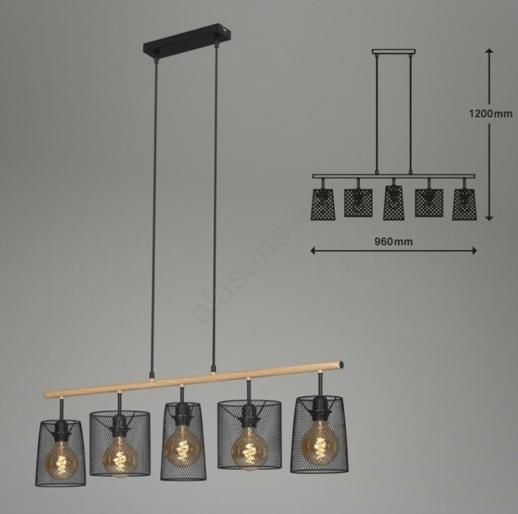 El diseño bonito y funcional caracteriza a Brilo 4078-054 - Lámpara colgante con cable WOOD & STYLE 5xE27/60W/230V.  Una bombilla con casquillo E27 es adecuada para la lámpara. Aquí, puedes comprar otras bombillas a precios ventajosos. Será una adición interesante para tu hogar.