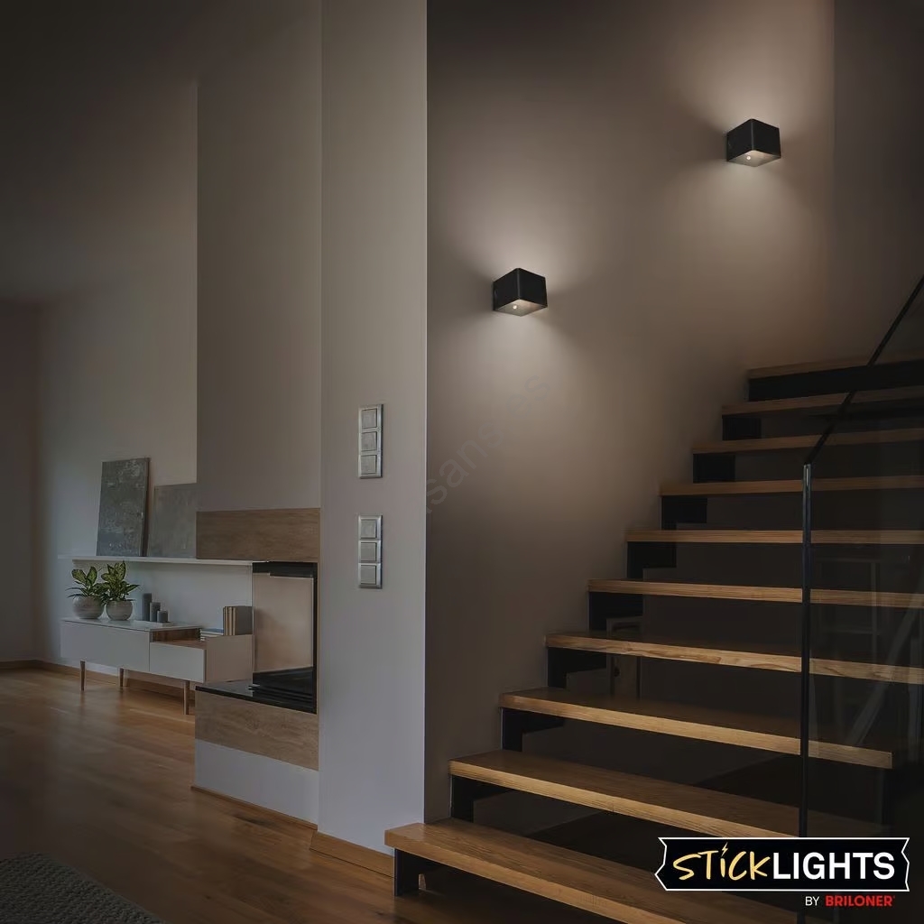 • Briloner 3879015 - Aplique de pared LED recargable con sensor de movimiento y crepuscular BORRA LED/1,5W/5V 3600 mAh negro