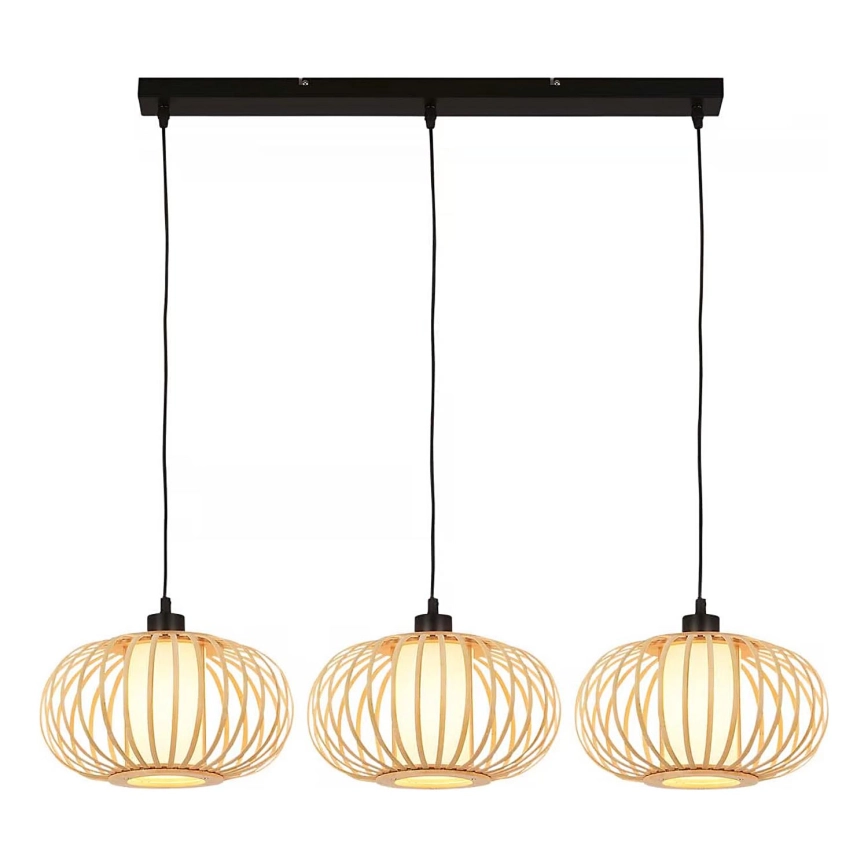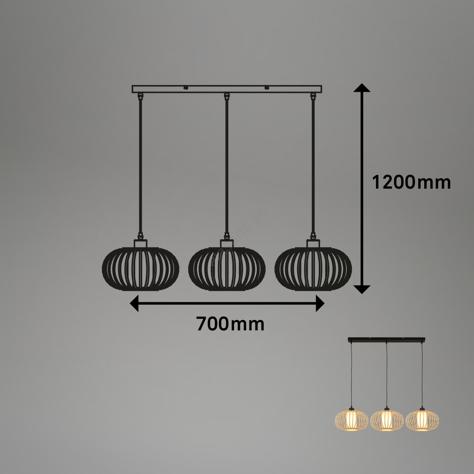 Briloner 4759031 - Lámpara colgante con cable 3xE27/10W/230V negra/bambú