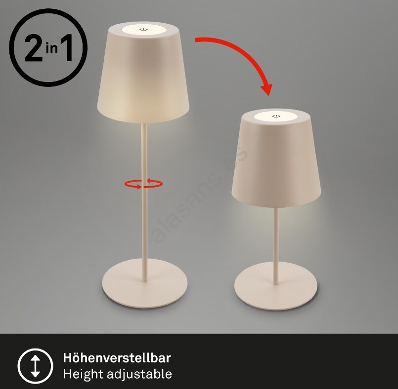 • Briloner 7508011 - Lámpara de mesa exterior recargable y regulable 2 en 1 LED/2,5W/5V IP44 1200 mAh beige
