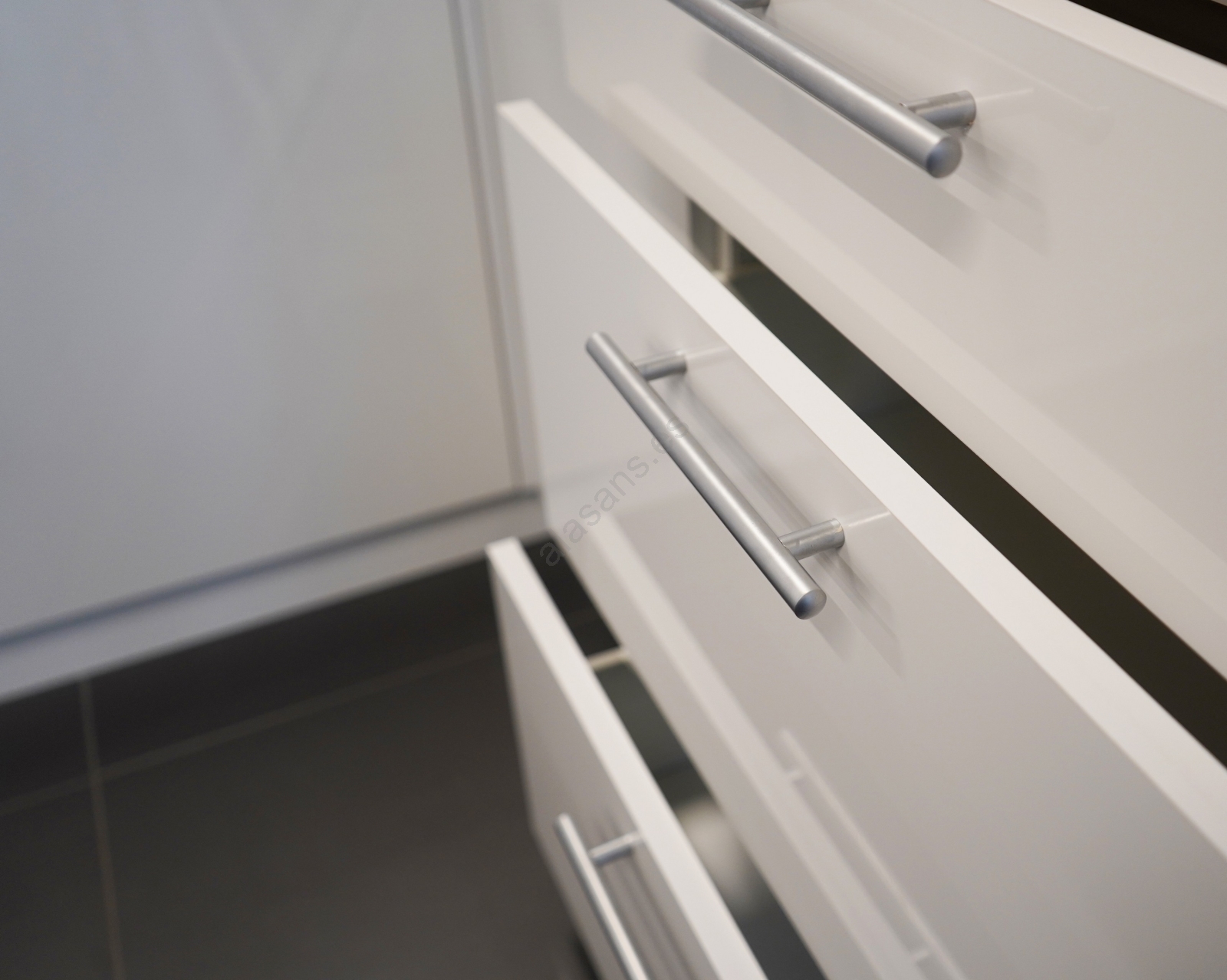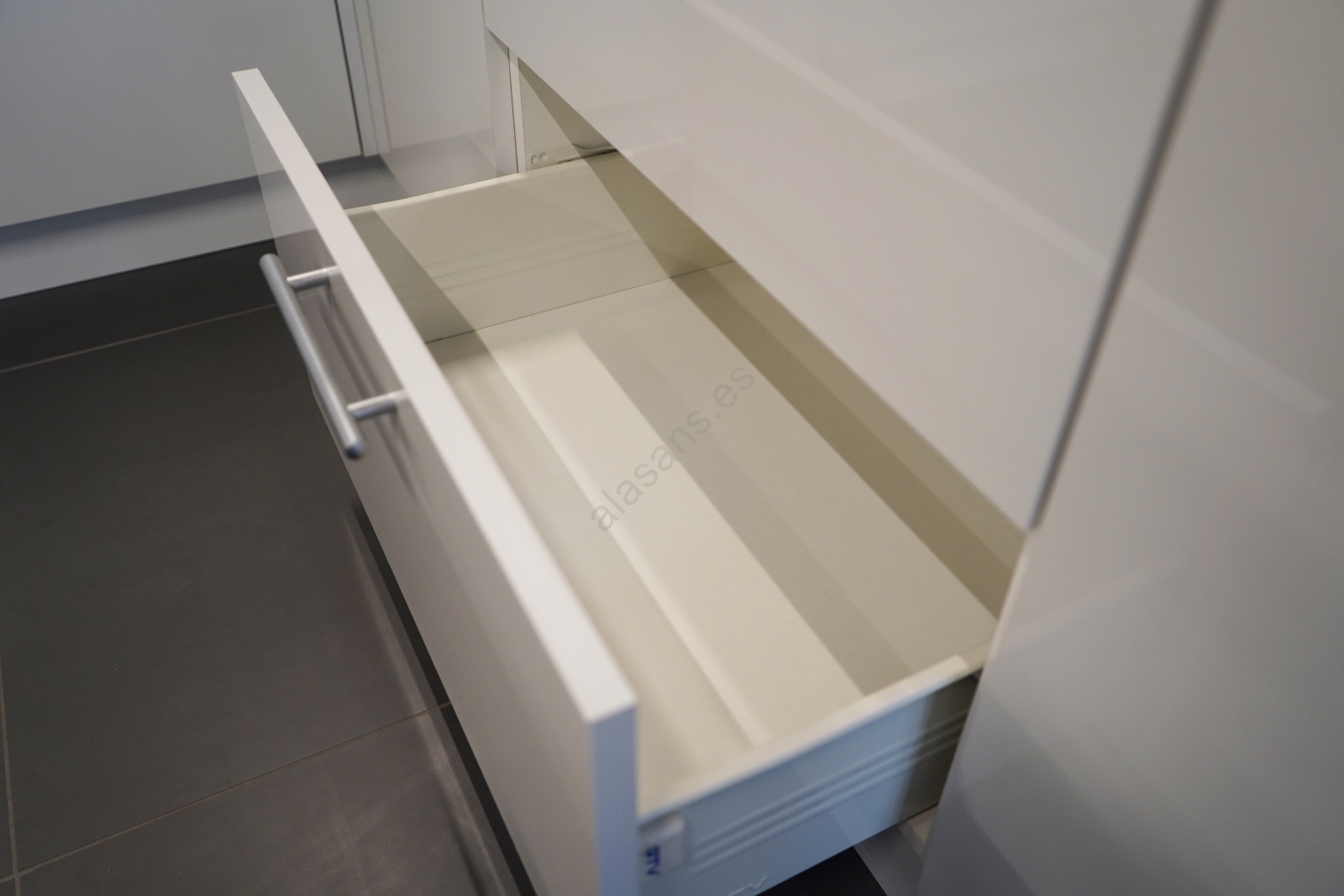 • Los armarios superiores están equipados con pistones de gas, en los cajones se han instalado guías metálicas encapsuladas de alta calidad.
