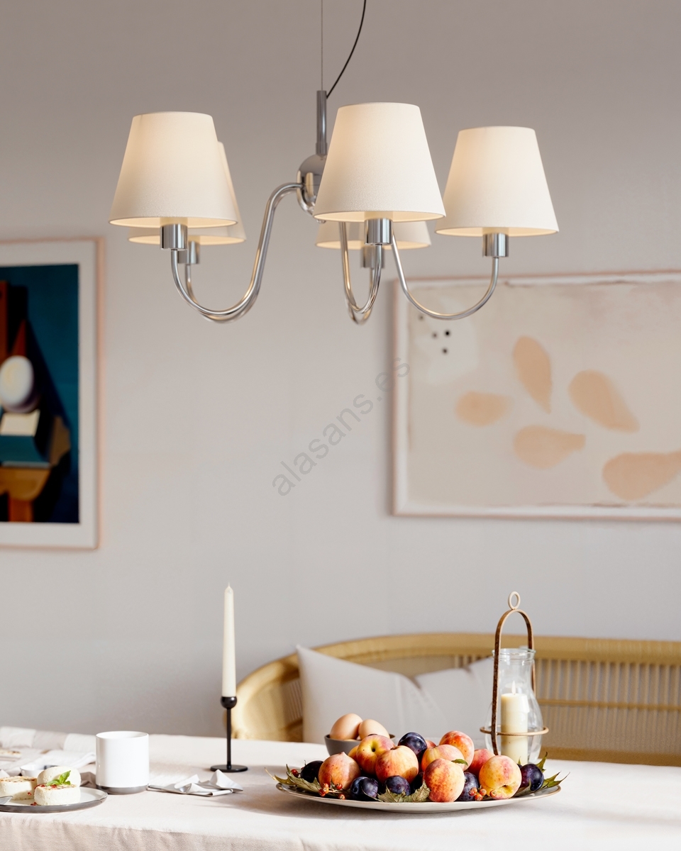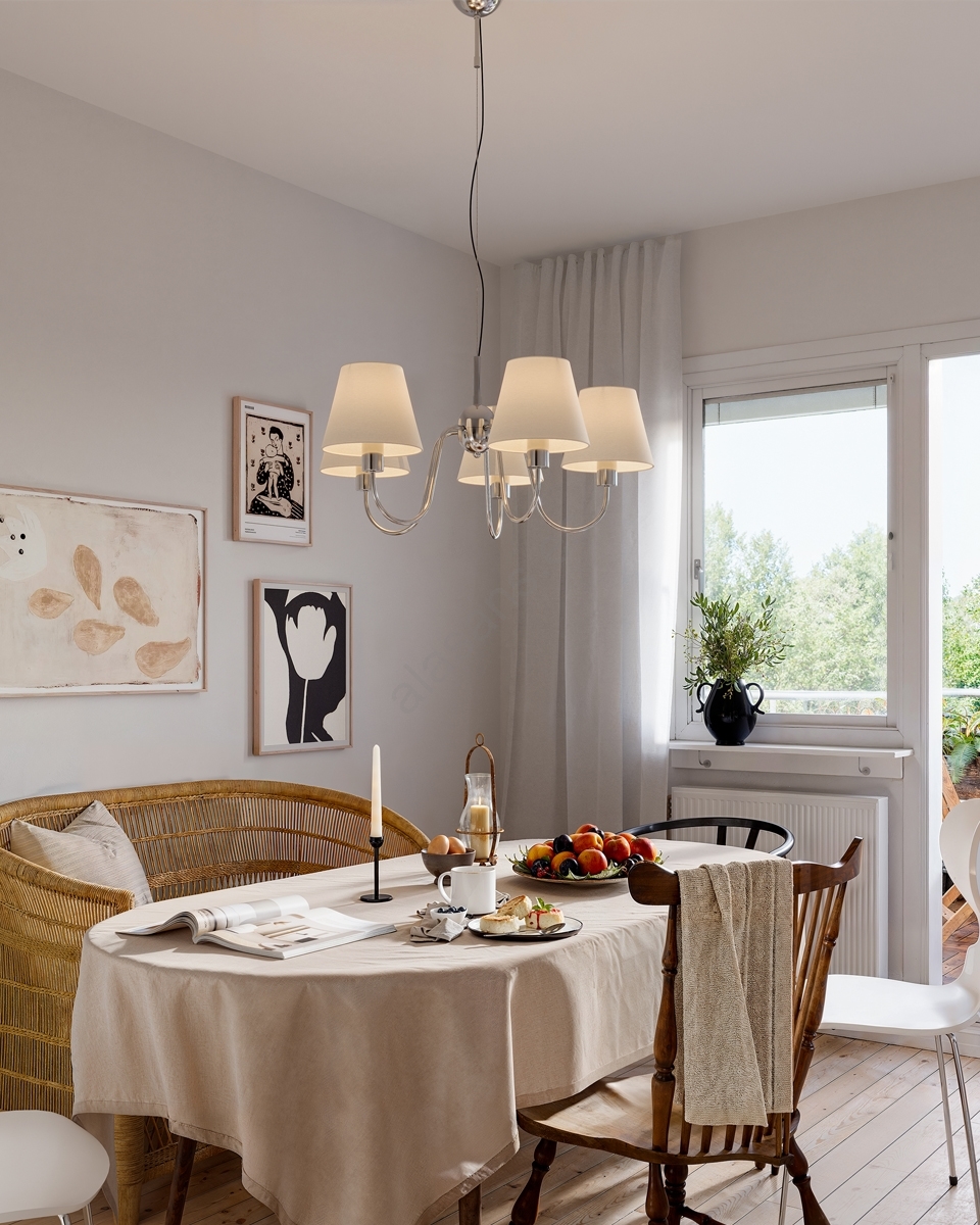 El diseño bonito y funcional caracteriza a ByRydens - Lámpara colgante de cable LYNF 5xE14/8W/230V cromo brillante/blanco.  Una bombilla con casquillo E14 es adecuada para la lámpara. Aquí, puedes comprar otras bombillas a precios ventajosos. Será una adición interesante para tu hogar.