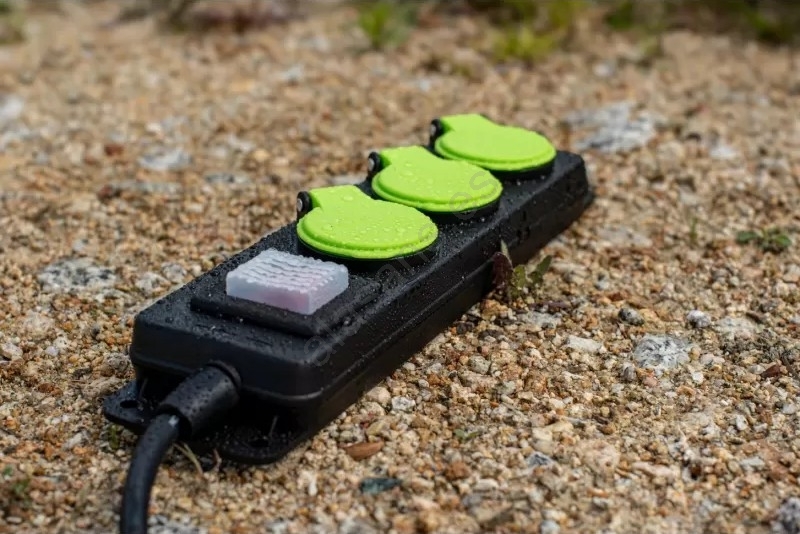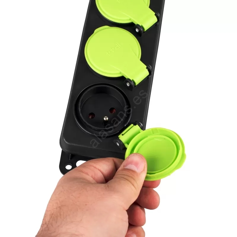 • Enchufes con tapa de muelle y cierre automático que protegen contra la humedad, la lluvia y la suciedad.