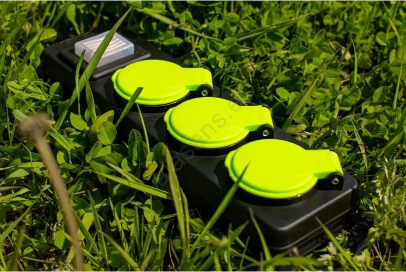 • Enchufes con tapa de resorte de cierre automático que protegen frente a la humedad, la lluvia y la suciedad.