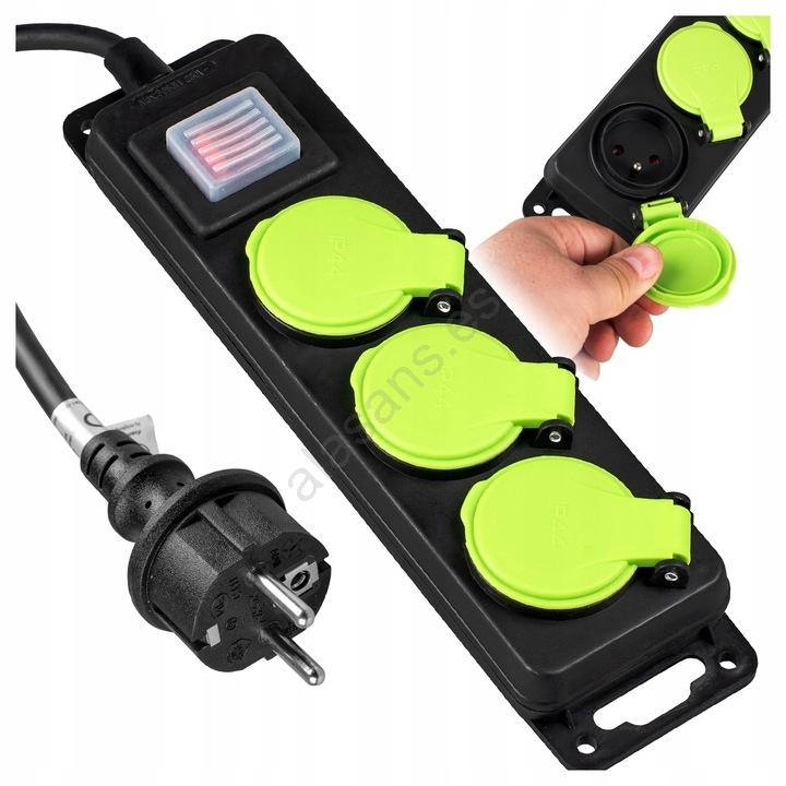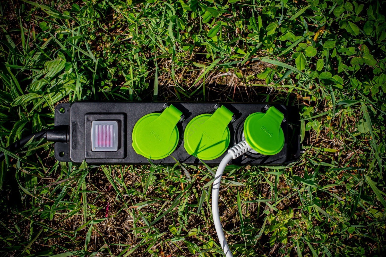 Cable de extensión con interruptor, 3 tomas, 20 m, IP44