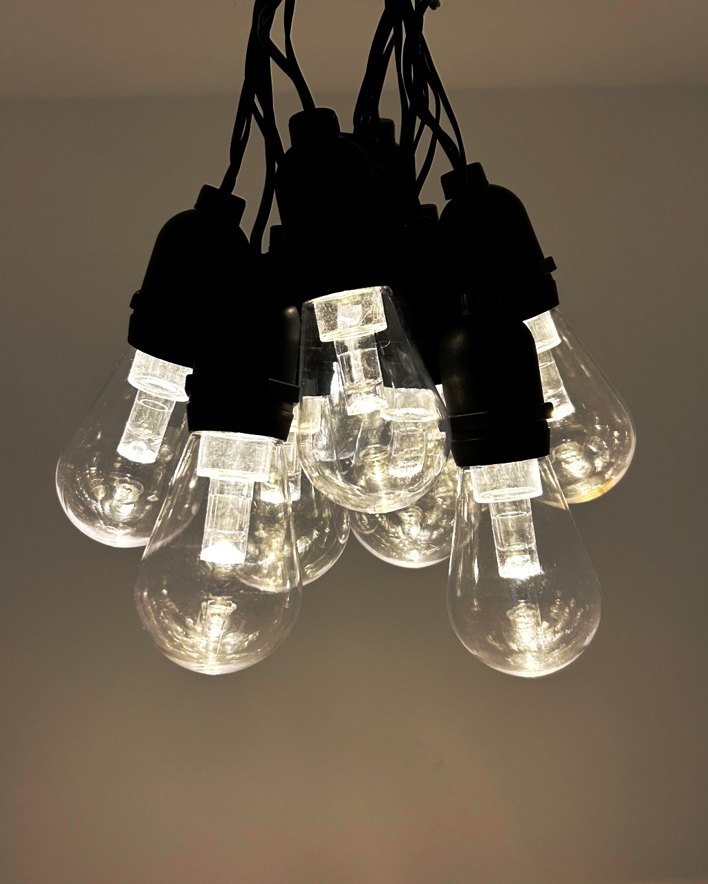 Cadena decorativa LED para exterior, 10 LEDs, 0,15 W por LED, 230 V, 3,8 m, IP44, color negro