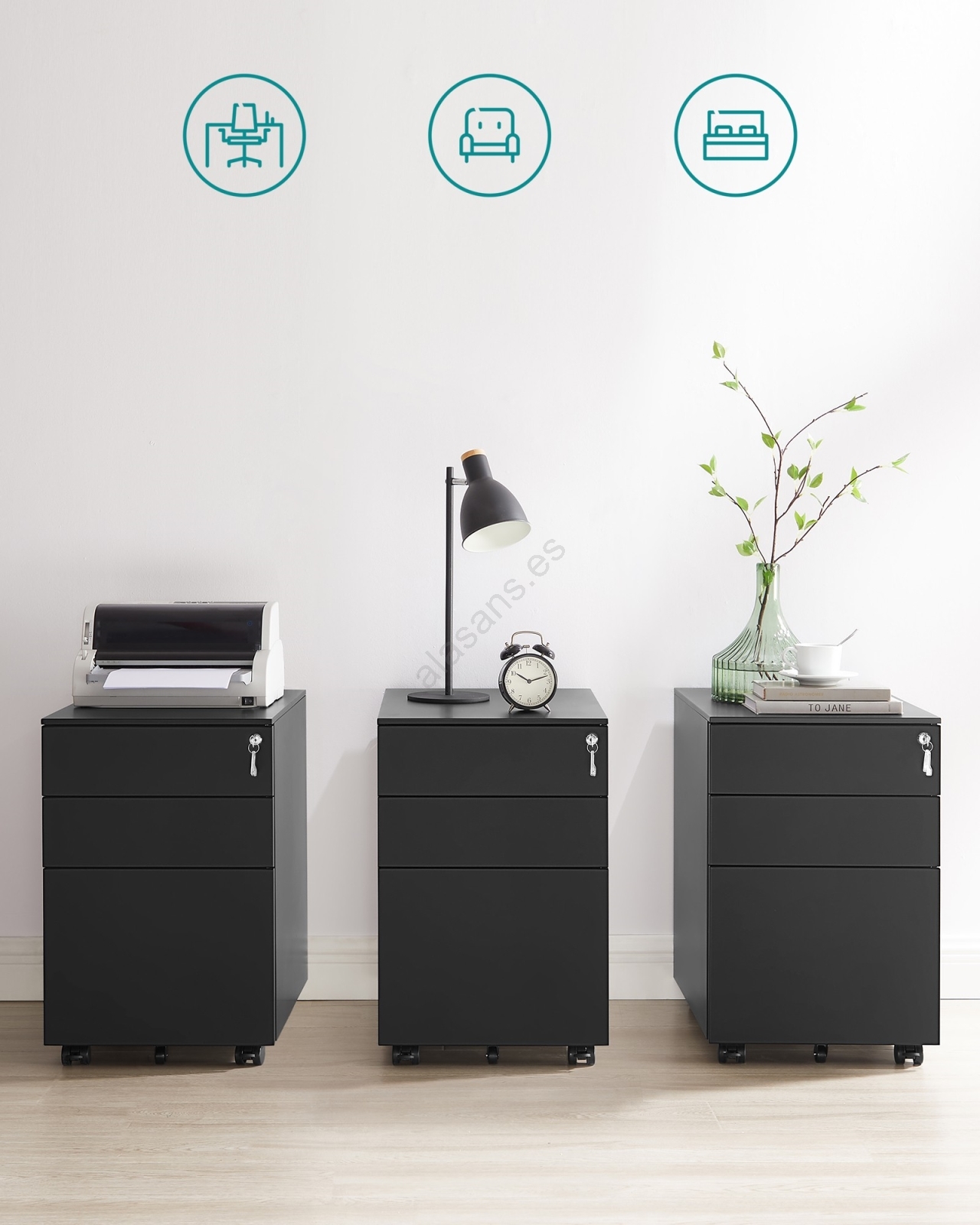Cajonera de oficina SECURIO negra