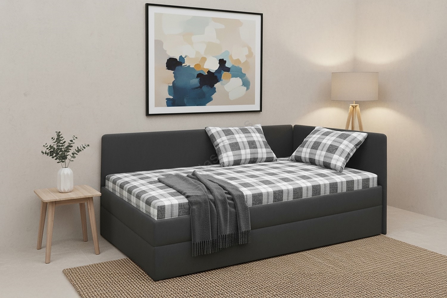 Cama tapizada con cabezal universal reversible (izq./der.) ARLY 110x200 cm antracita/blanco