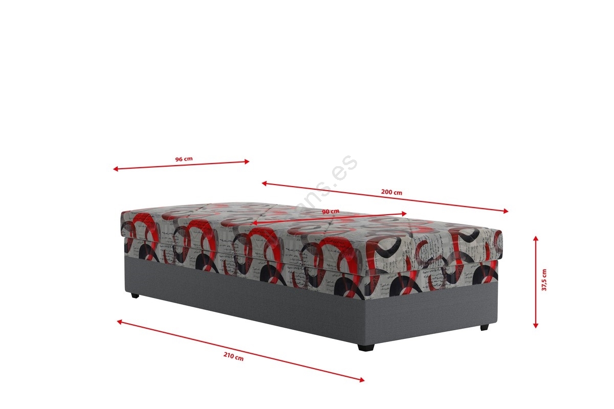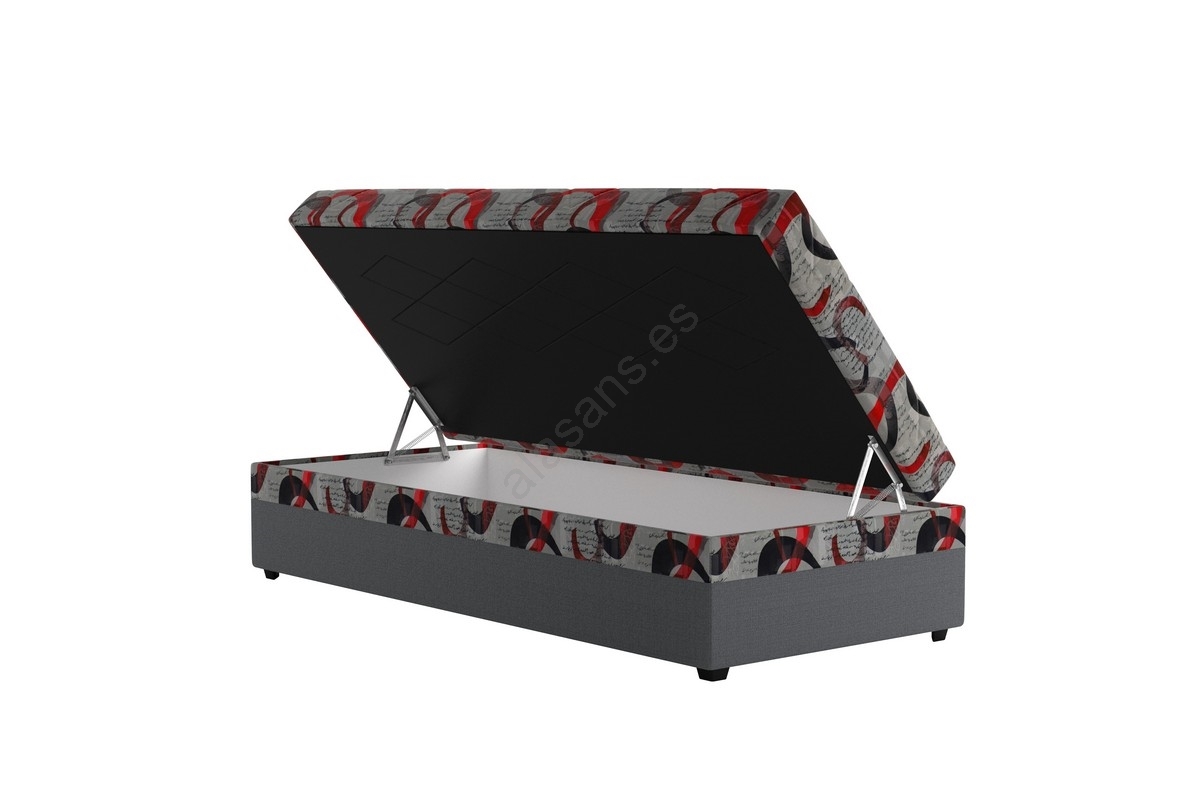 Cama tapizada con arcón ESTEL 90x200 cm gris