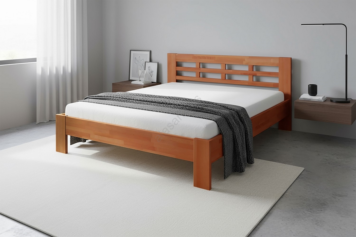• Cama matrimonial de madera maciza ANGELA 180x200 cm nogal claro