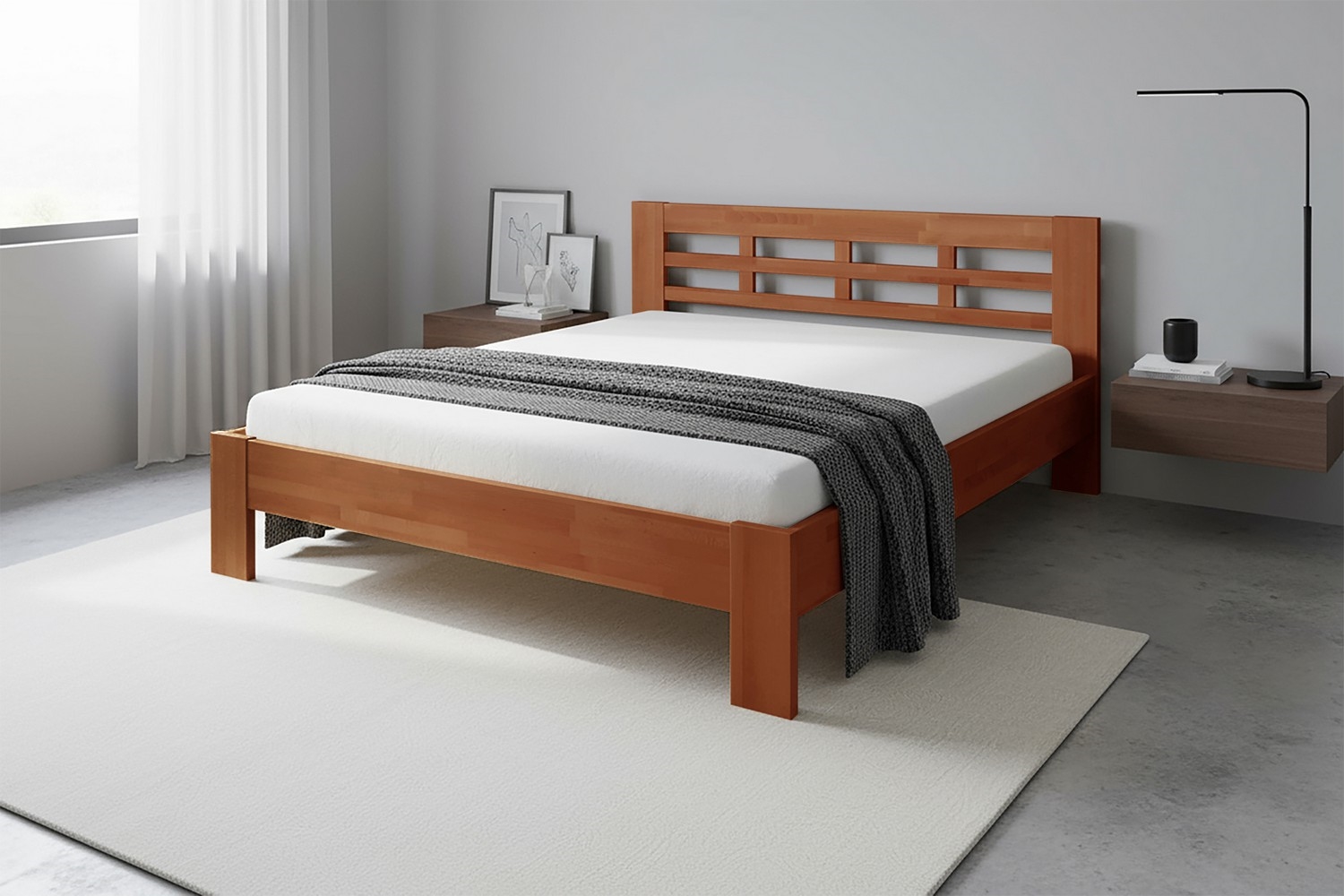 • Cama matrimonial de madera maciza ANGELA 180x200 cm nogal claro