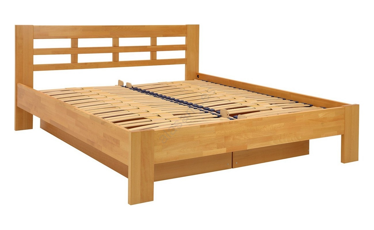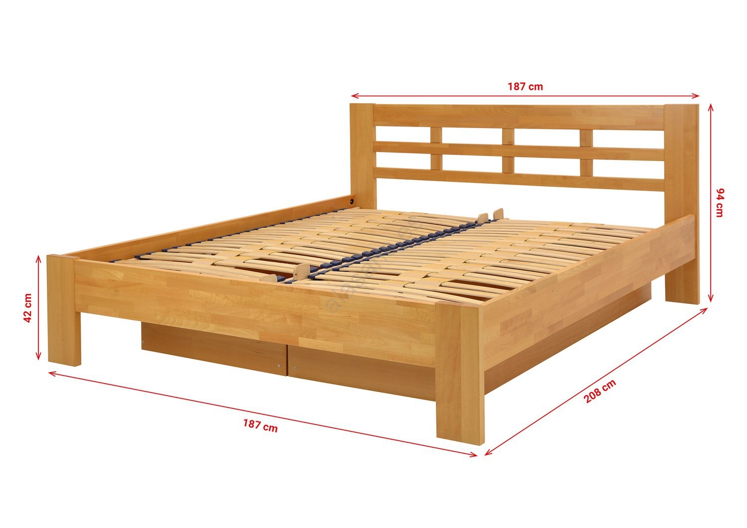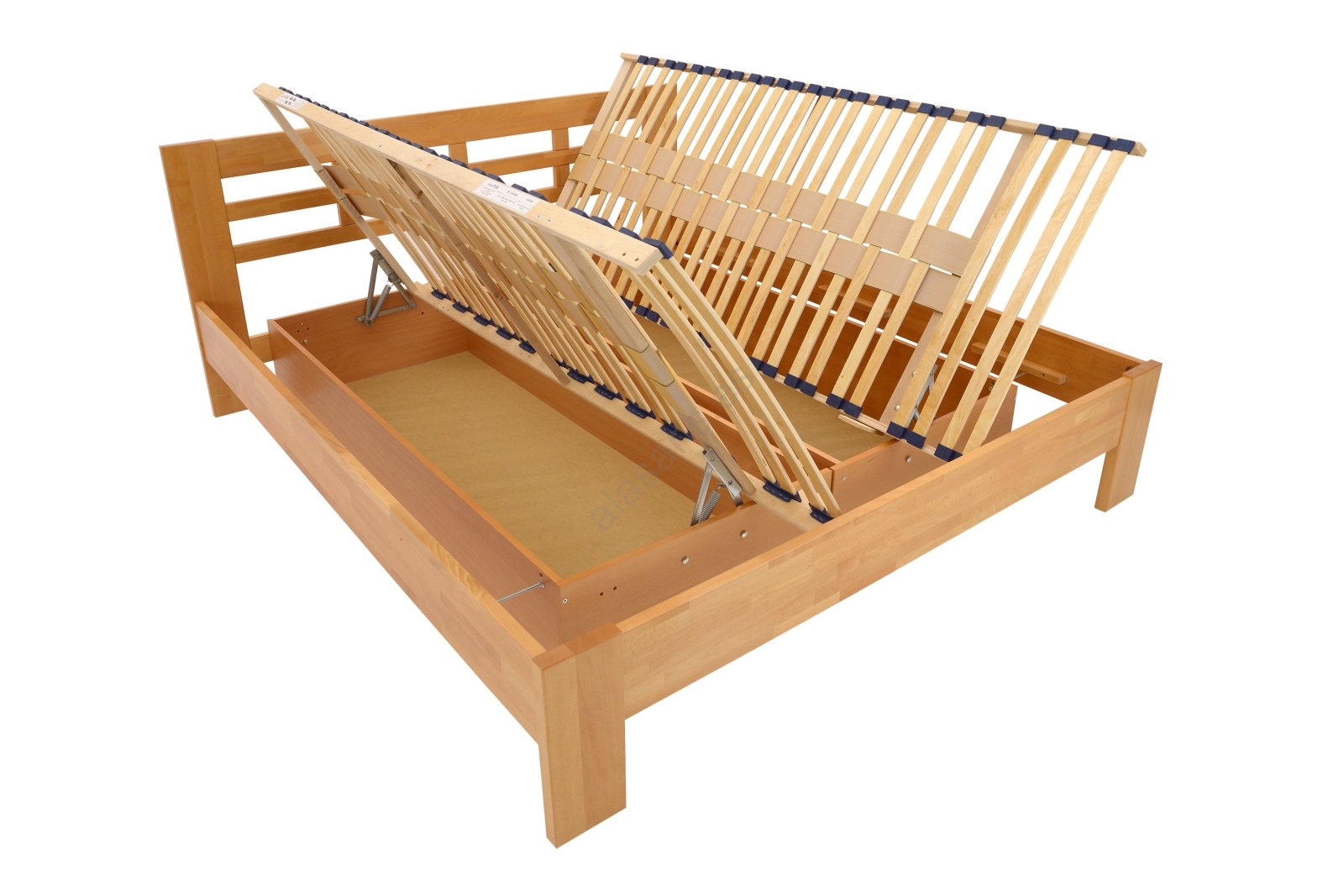 • Cama doble de madera maciza con espacio de almacenamiento ANGELA 180x200 cm haya