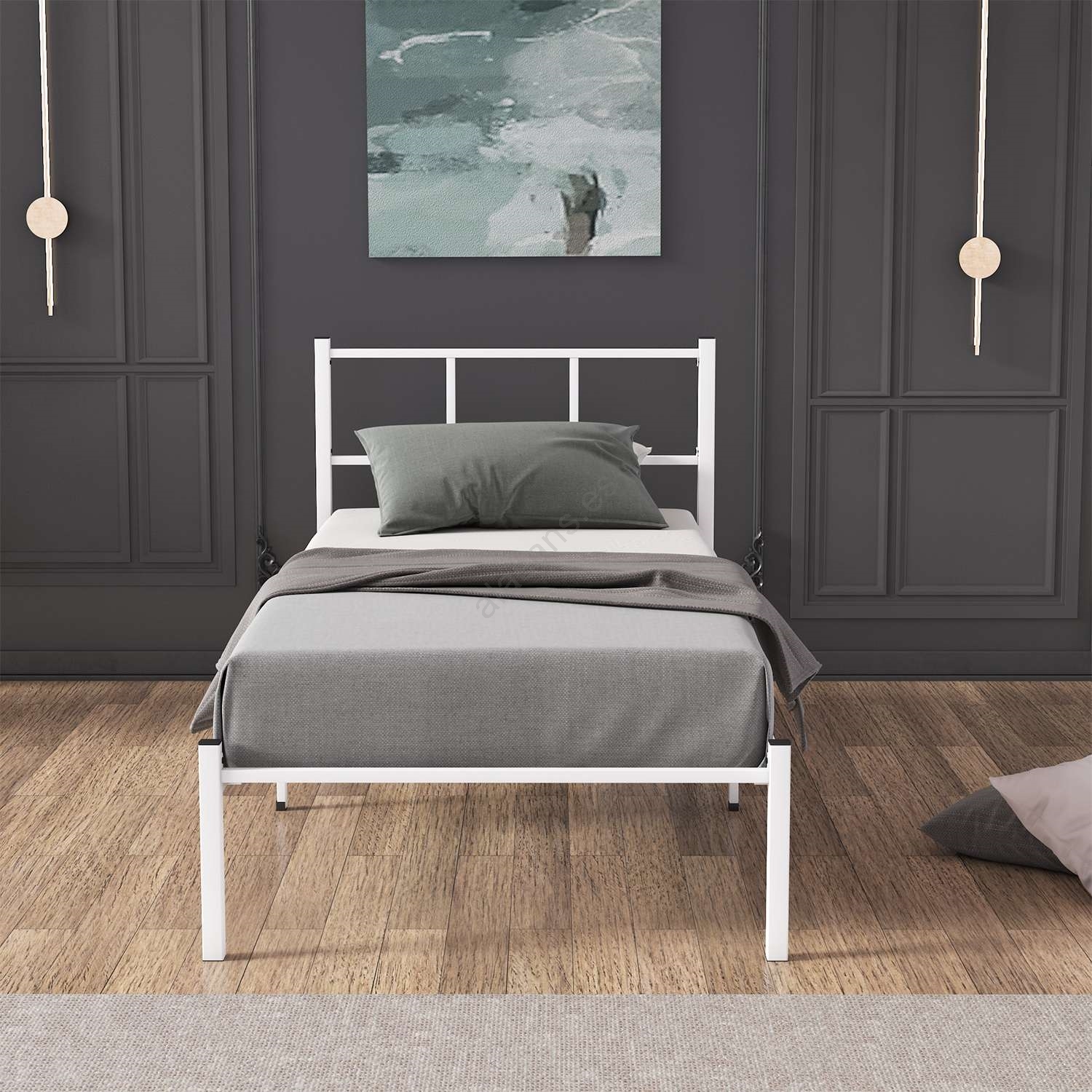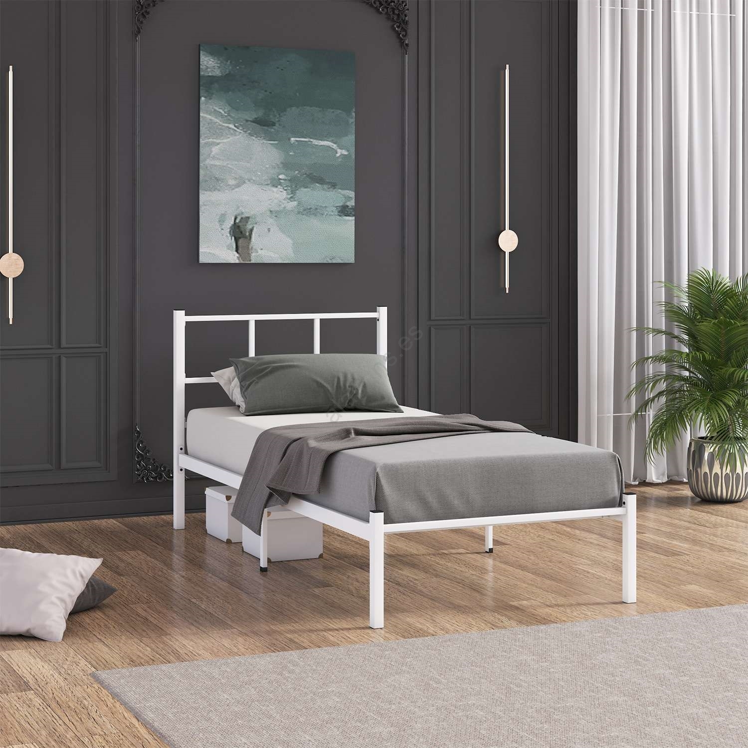 • Cama individual metálica ROVAN 90x200 cm, blanca, capacidad de carga 120 kg