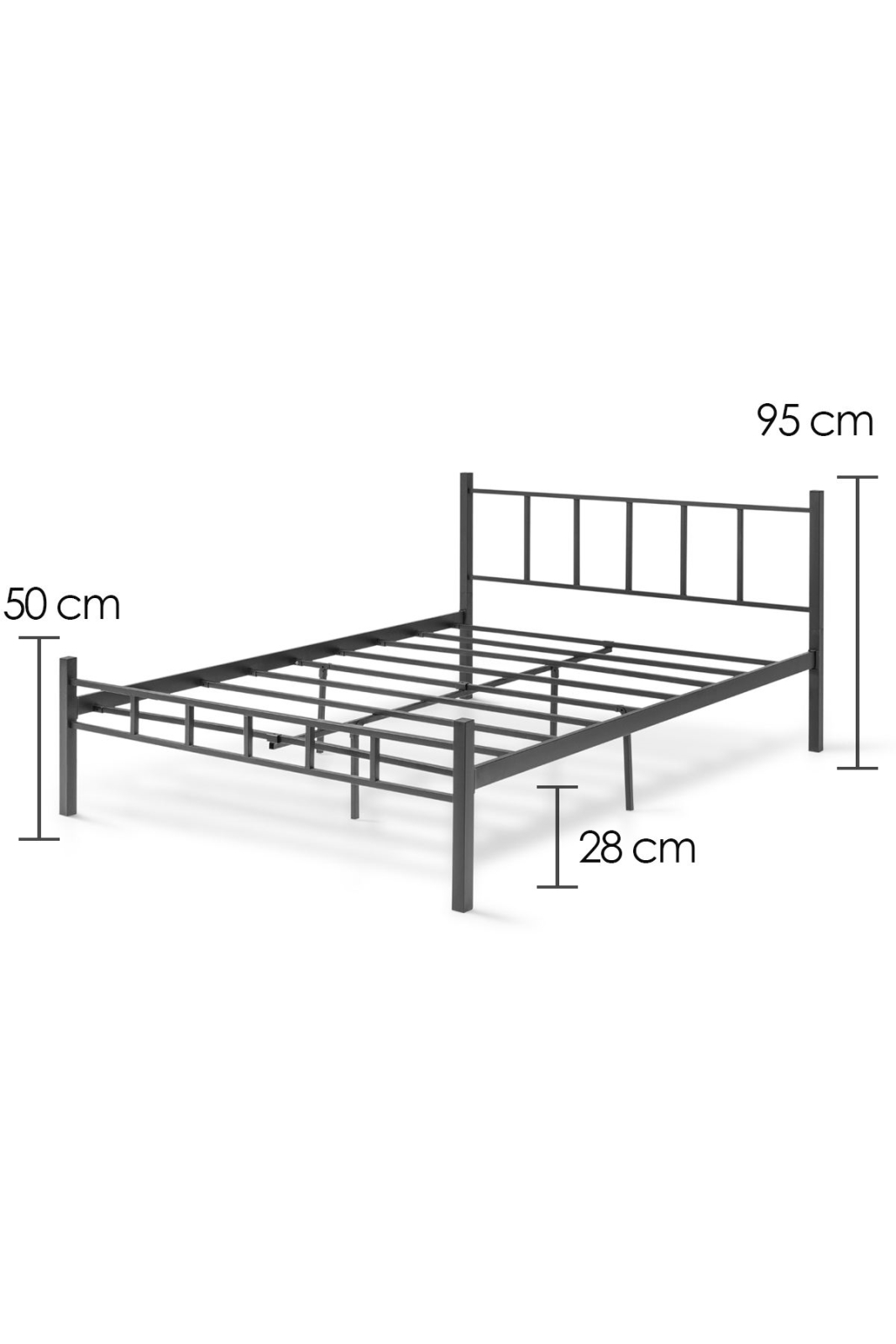 Cama metálica doble ORMEL 160x200 cm, color negro, capacidad de carga 200 kg