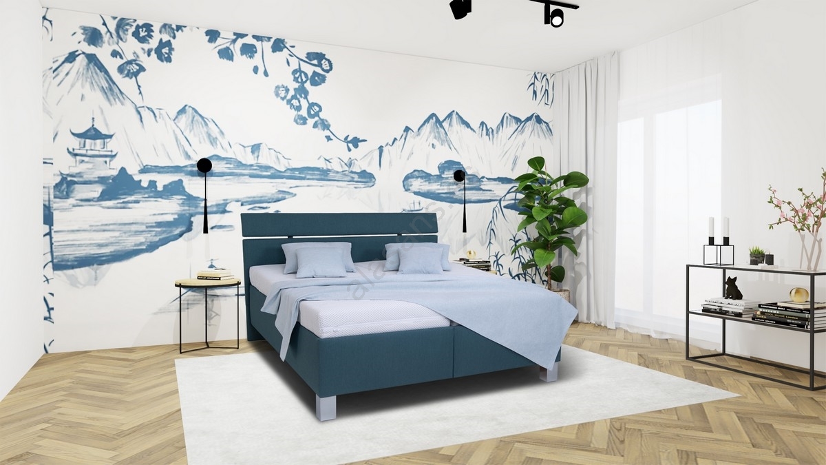 Cama tapizada ALIS 160x200 cm con colchón y práctico espacio de almacenamiento en azul petróleo
