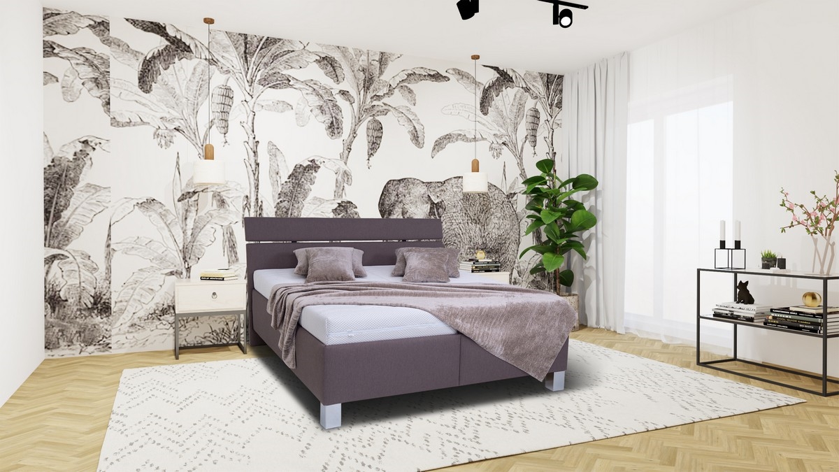 • Cama tapizada ALIS 160x200 cm con colchón y arcón de almacenamiento, gris claro