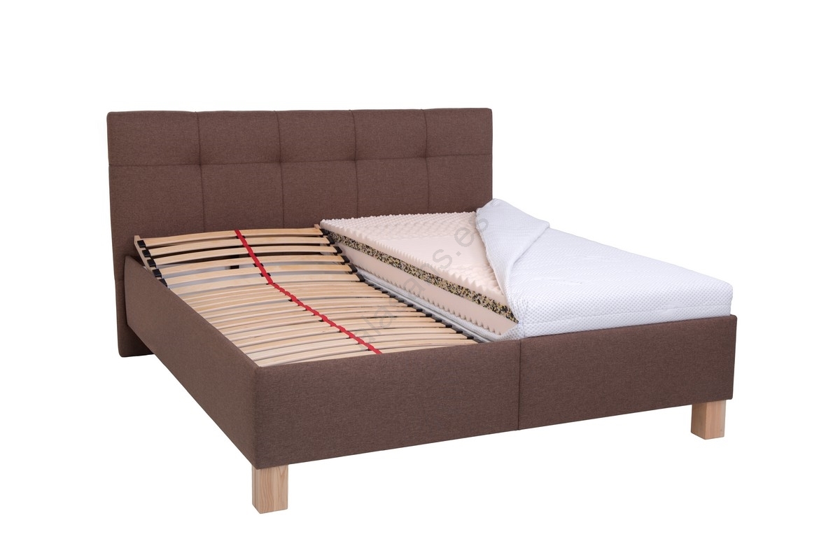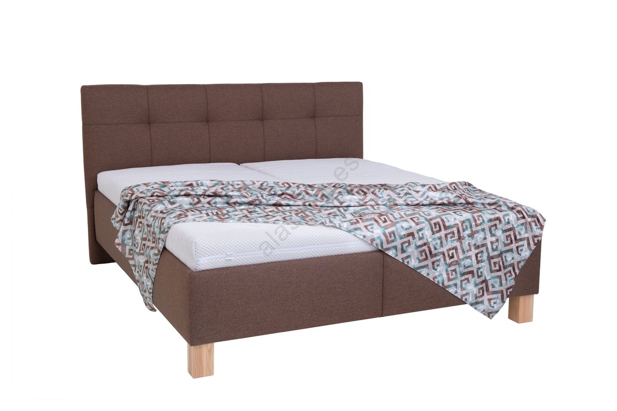 • Cama tapizada MARIA 160x200 cm con colchón y arcón de almacenamiento, marrón