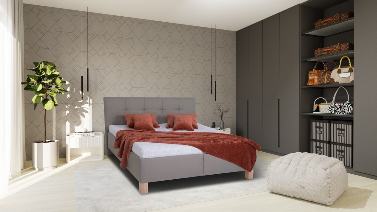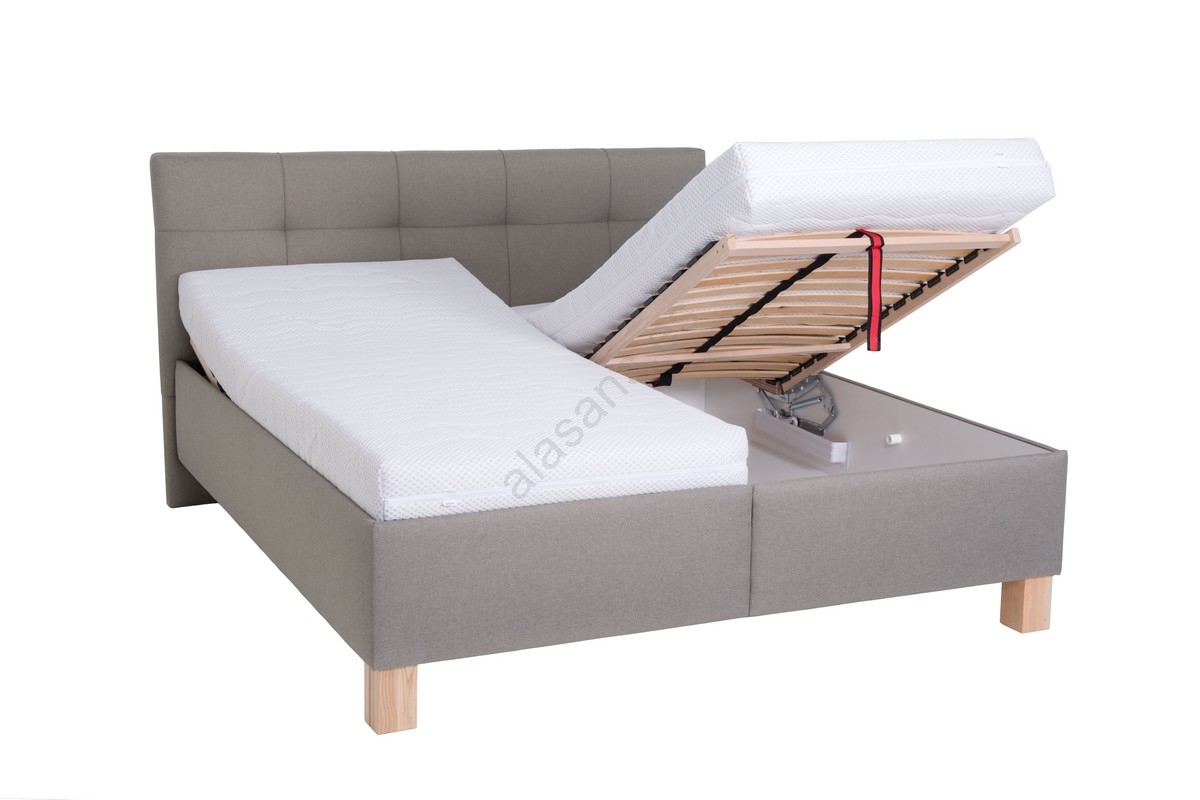• Cama tapizada con colchón y espacio de almacenamiento MARIA 160x200 cm gris
