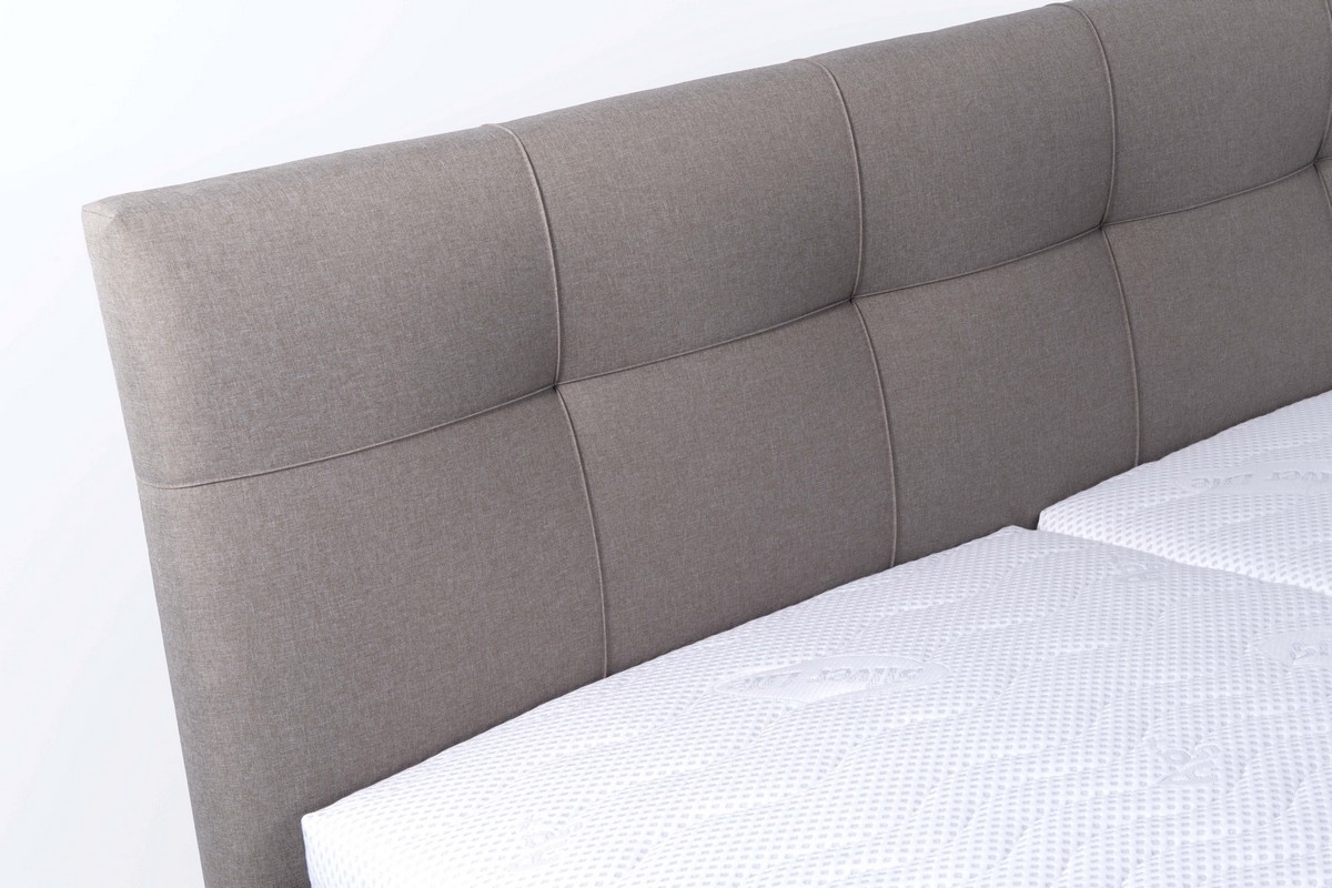 Cama tapizada con colchón y espacio de almacenamiento MARIA 180x200 cm color topo