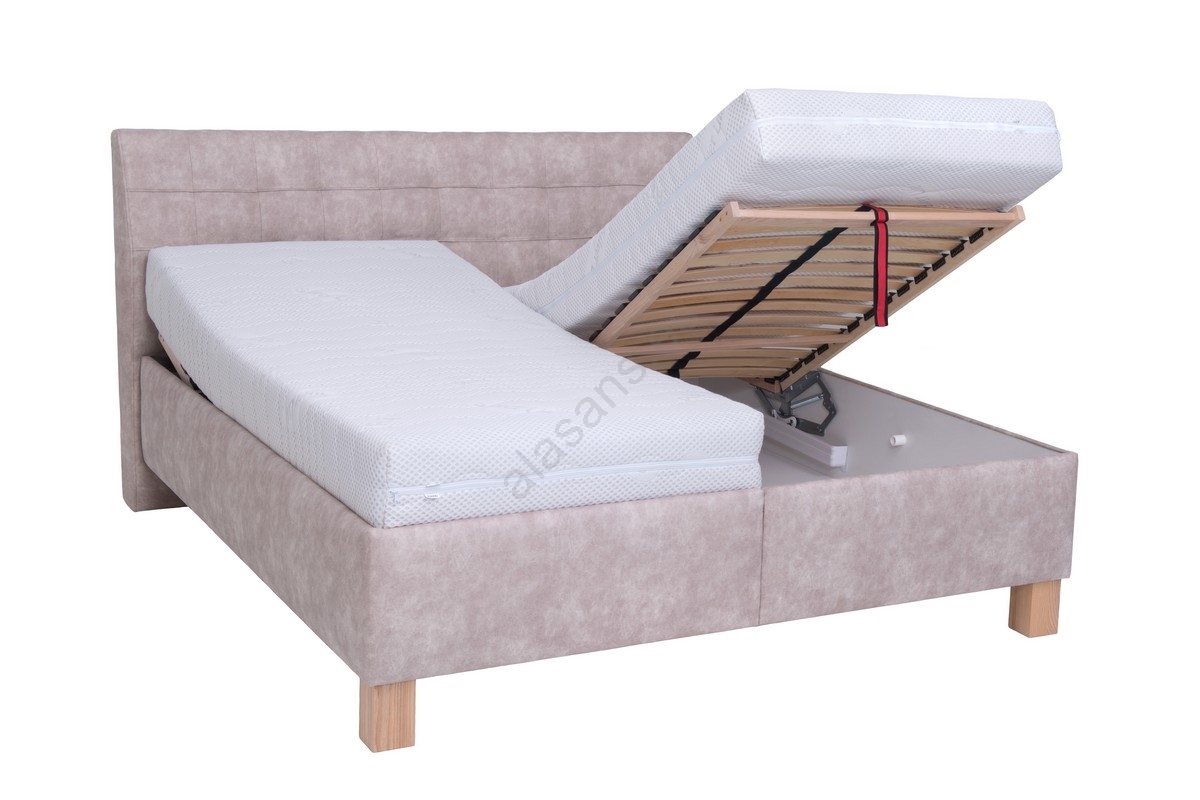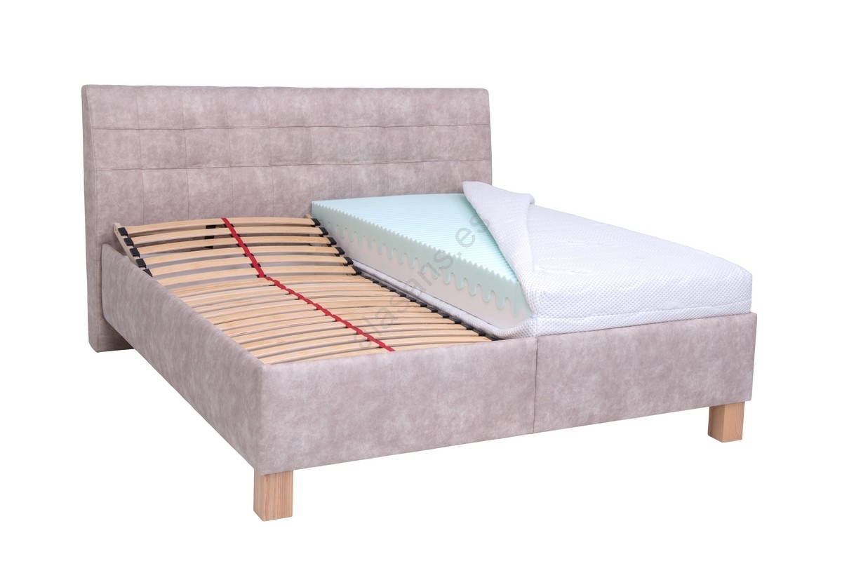 • Cama tapizada con colchón y práctico espacio de almacenamiento VIOLET 160x200 cm beige