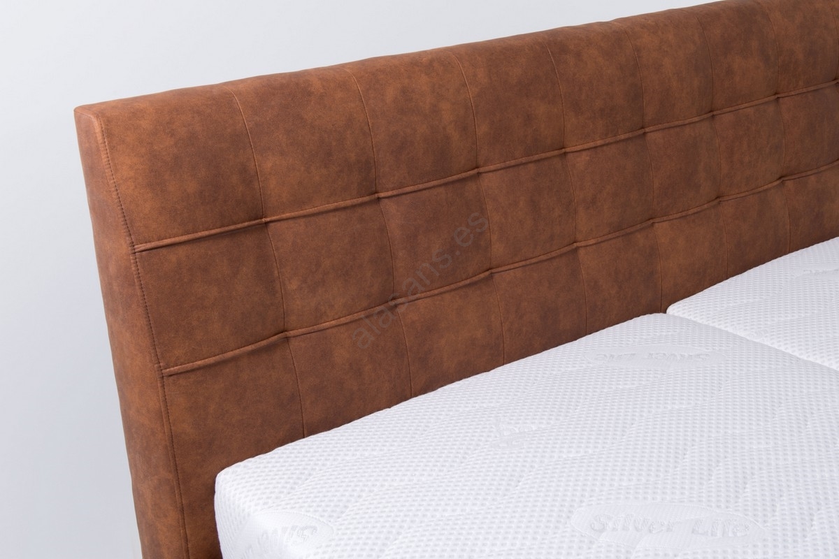 • Cama tapizada VIOLET 160x200 cm con colchón y espacio de almacenamiento, marrón coñac