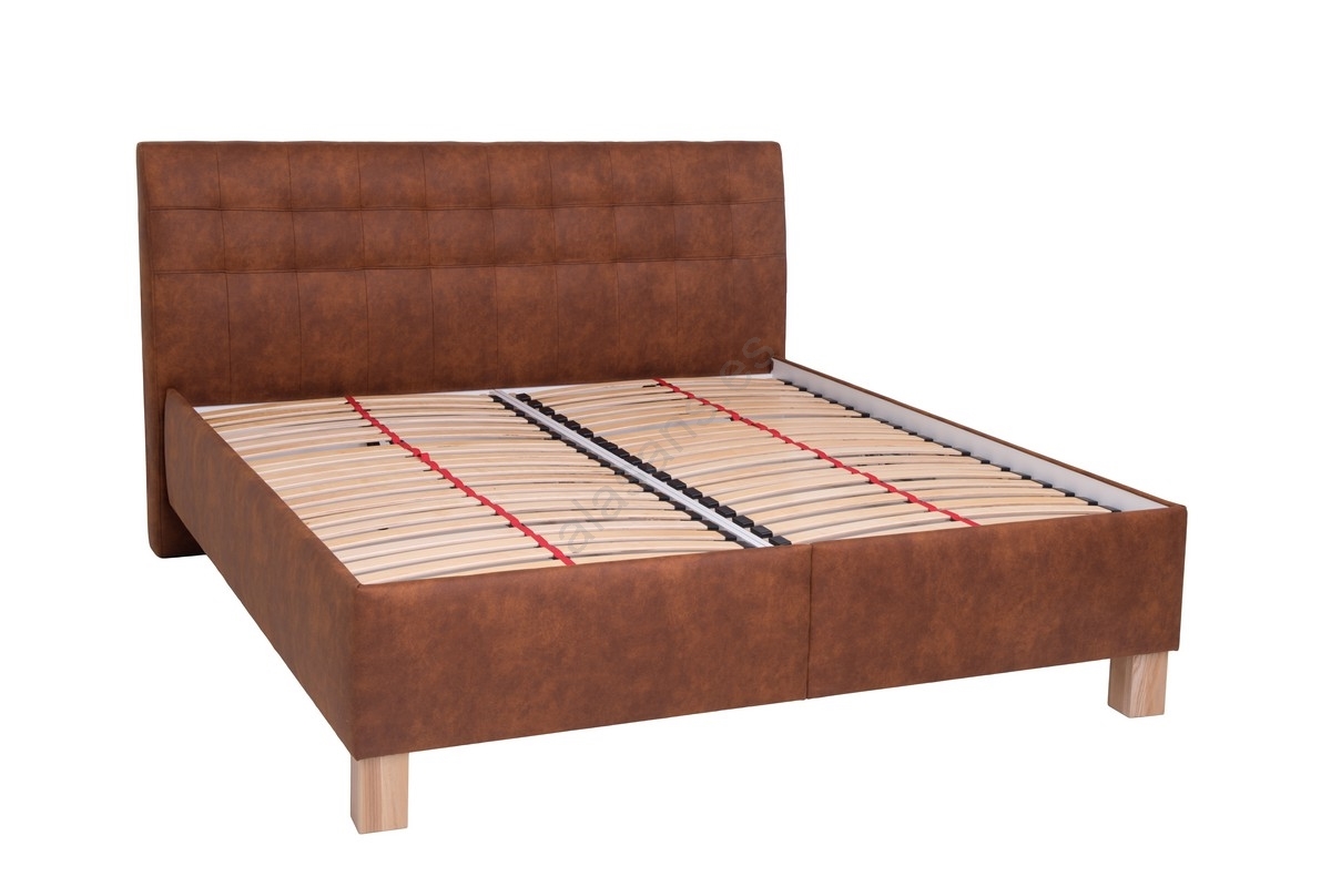 • Cama tapizada con espacio de almacenamiento sin colchón VIOLET 160x200 cm color coñac