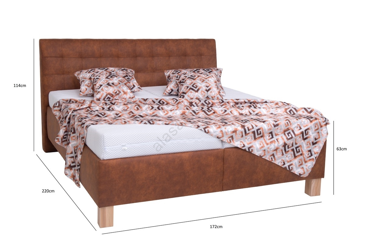 Cama tapizada VIOLET 160x200 cm con colchón y espacio de almacenamiento, marrón coñac