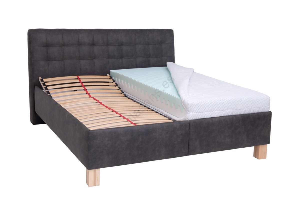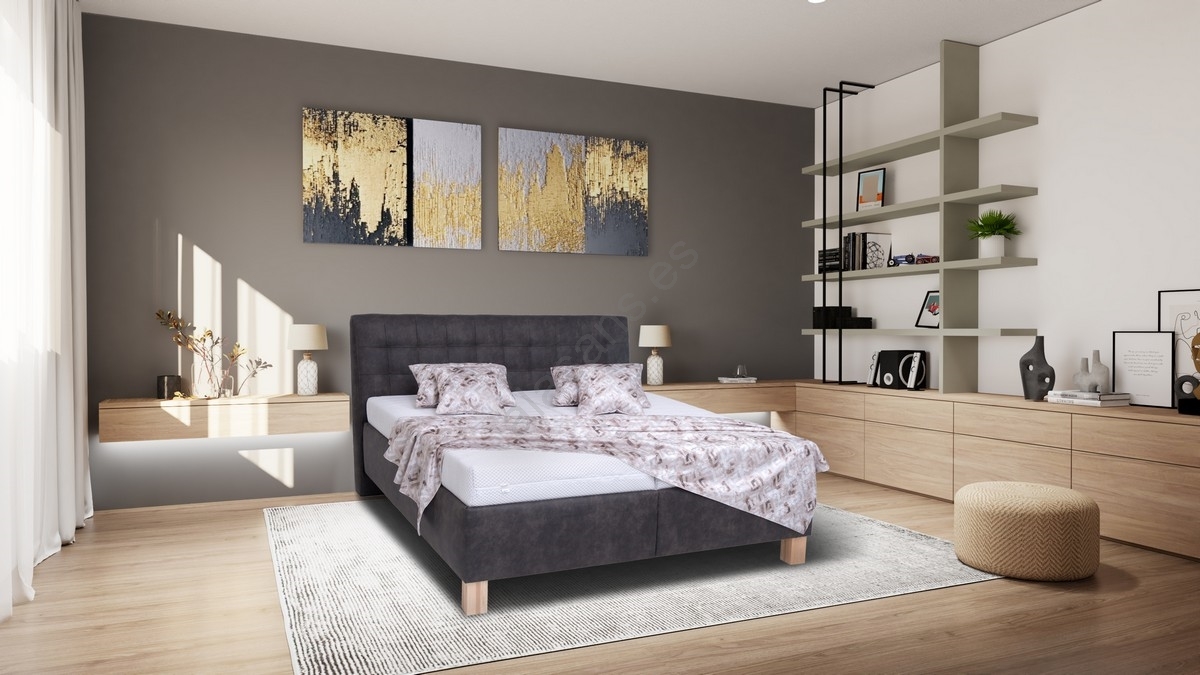 • Cama tapizada VIOLET 180x200 cm con colchón y espacio de almacenamiento, gris oscuro