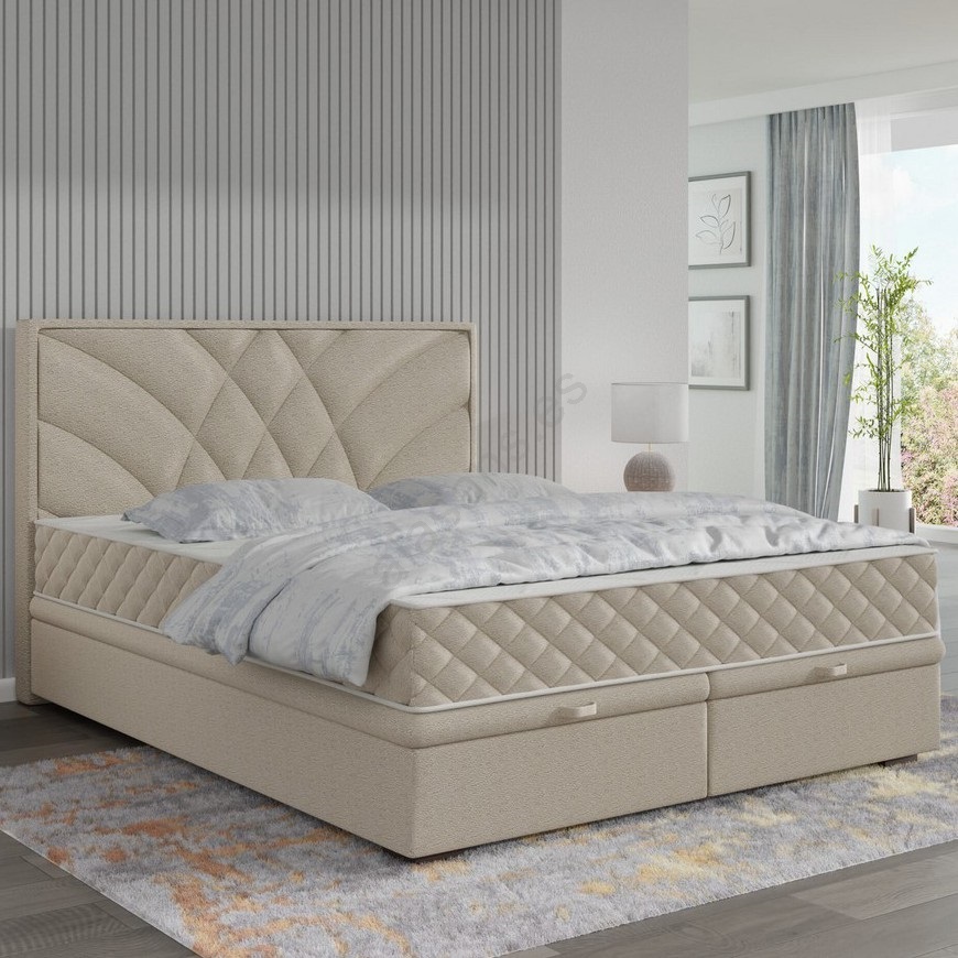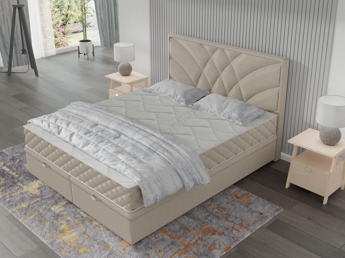 Cama tapizada GINA 160x200 cm con colchones y arcón, beige