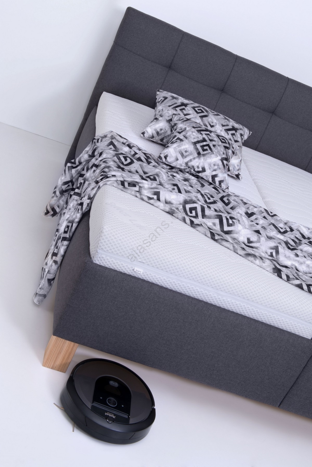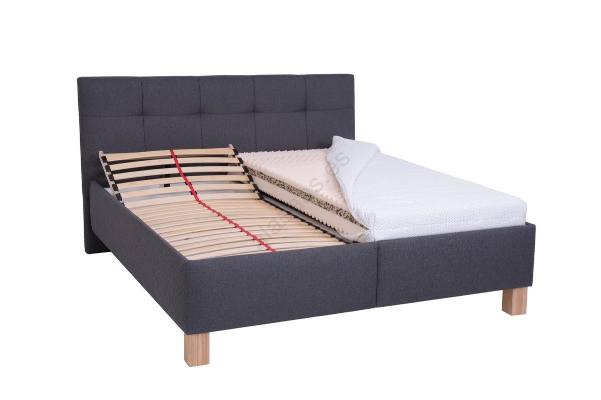 • Cama tapizada con colchón y espacio de almacenamiento MARIA 160x200 cm gris