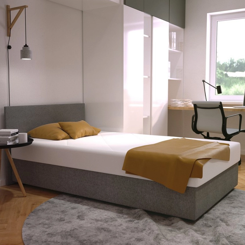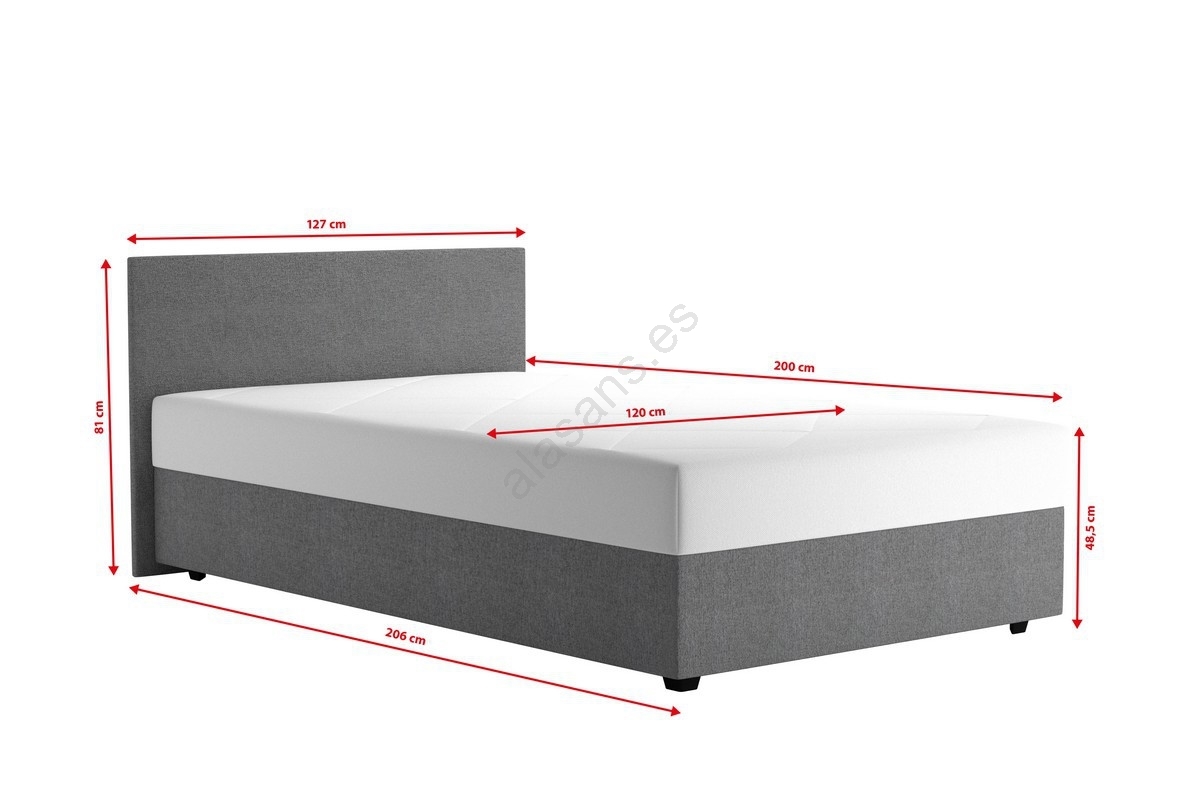 Cama tapizada DARIA 120x200 cm con espacio de almacenamiento y colchón, gris